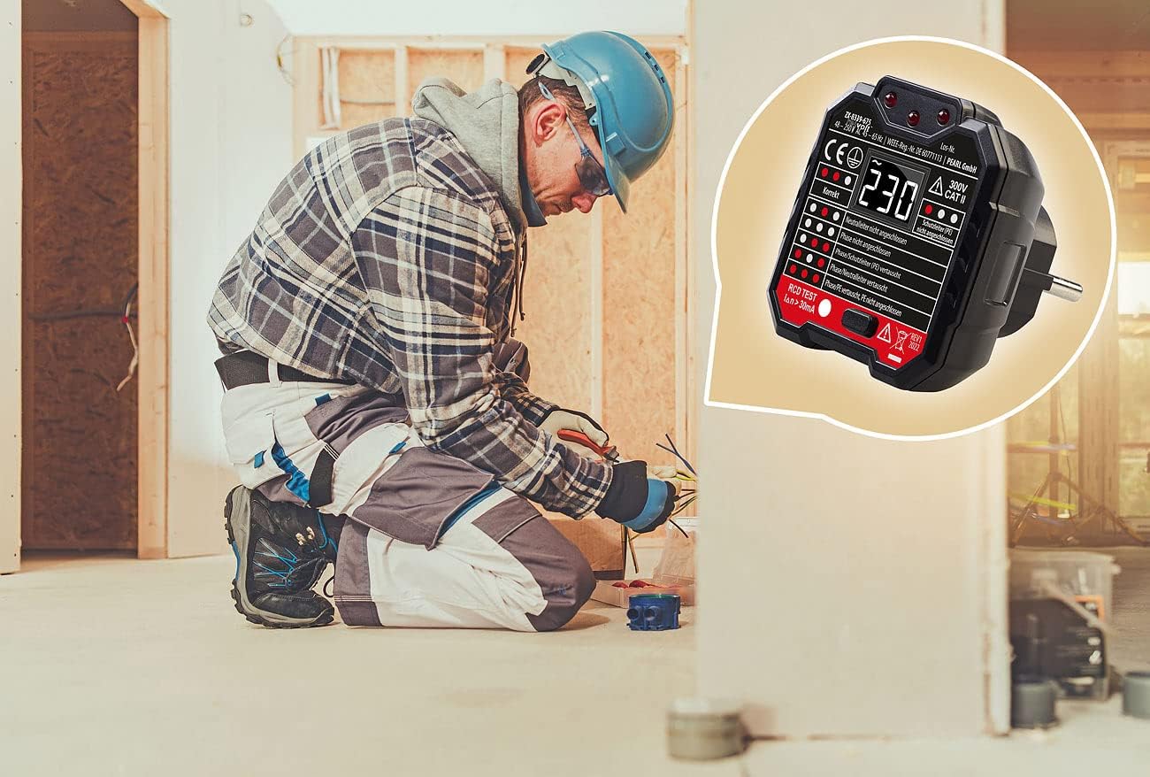 - Ideal für Sanierungsarbeiten und elektrische Wartungs-Tests • LCD-Display zum einfachen Ablesen der Stromspannung • 3 LEDs zur genauen Fehlerermittlung • Mit RCD-Prüfung • Keine Batterien notwendig