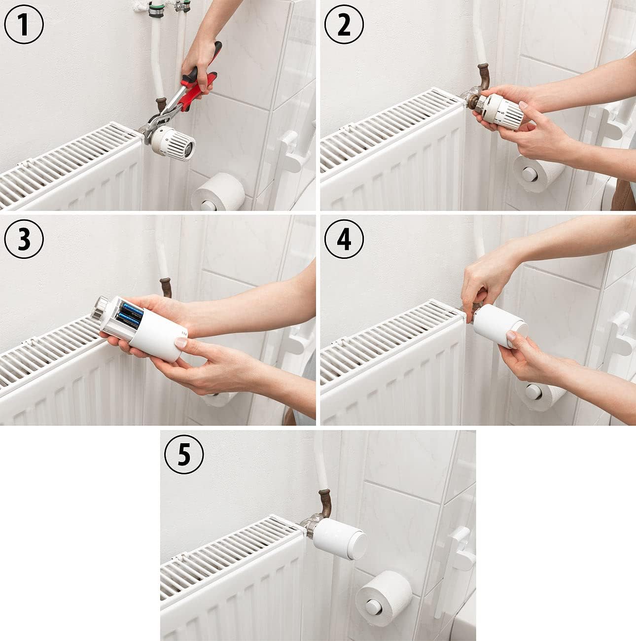 - Energiespar-Heizkörperthermostat zum zeitgesteuerten Regulieren der Raumtemperatur • Zusätzlich 6 Adapter: RA, RAVL, RAV, M28 x 1,5, GIA, CALEFFI • Raumtemperatur auf 0,5 °C genau einstellbar, Temperaturbereich: 5 - 30 °C • WiFi-kompatibel: