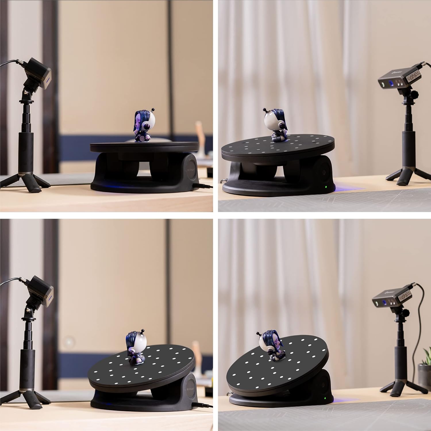 - Präzises Scannen: Erfassen Sie schnell und einfach jeden Winkel eines Objekts, ohne das Objekt zu verstellen oder den Scanner zu bewegen.