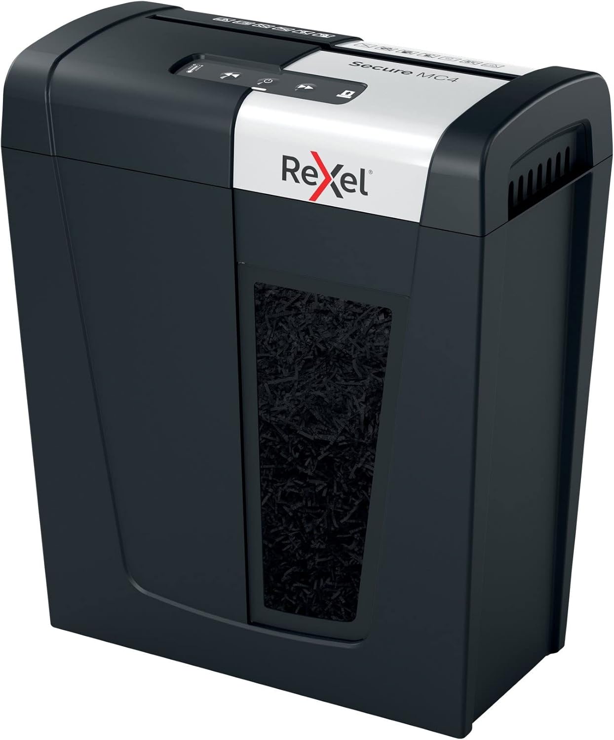 - Lieferumfang: 1 x Rexel Secure MC4 Whisper-Shred Aktenvernichter, Mikroschnitt P5, 14-Liter-Abfallbehälter, Abmessungen (B x H x T): 170 x 377 x 321 mm, Farbe: Schwarz, 2020129EU