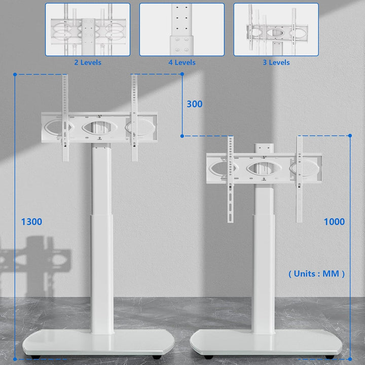 - Höhenverstellbare und schwenkbare Halterun:Der hohe TV Ständer hat eine Höhenverstellung von 1000-1300 mm, mit verschiedenen Höhenvariationen, und es kann auch 60° nach links und rechts geschwenkt werden, um Ihnen einen bequemen Blickwinkel zu geben.