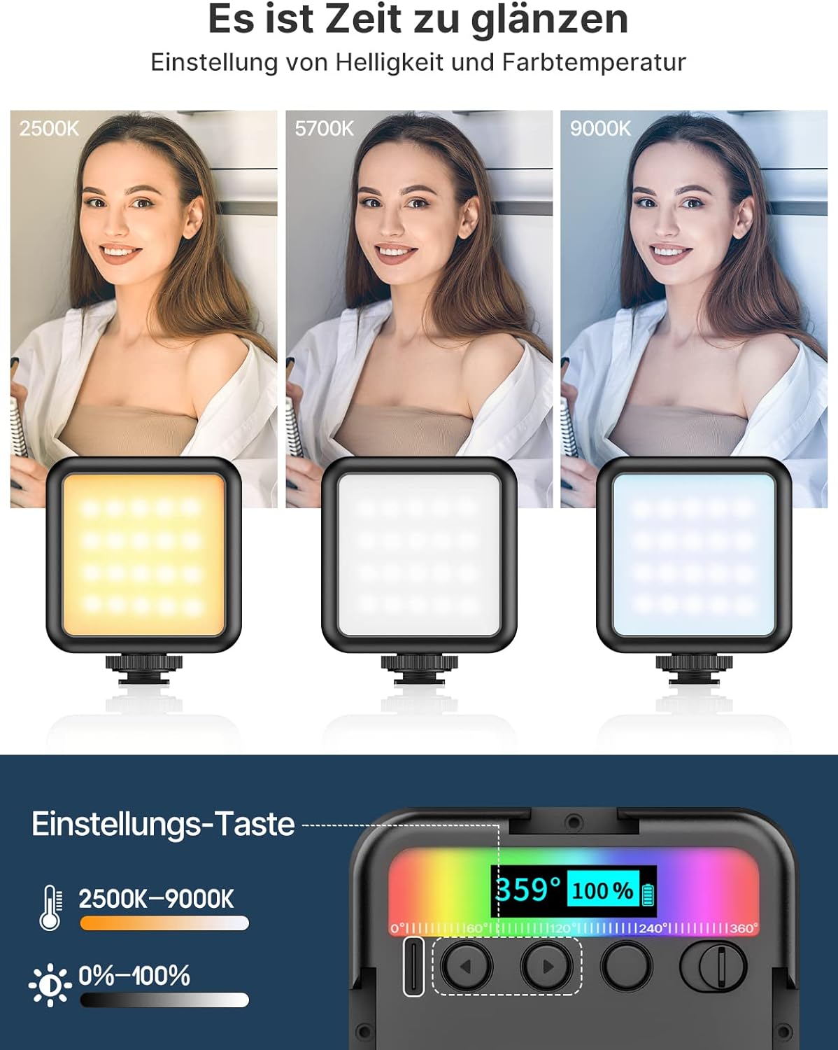 Video Licht RGB, ULANZI VL49 LED Videoleuchte mit 2000 mAh Akku, Kamera Licht Klein Dimmbare 2500K-9