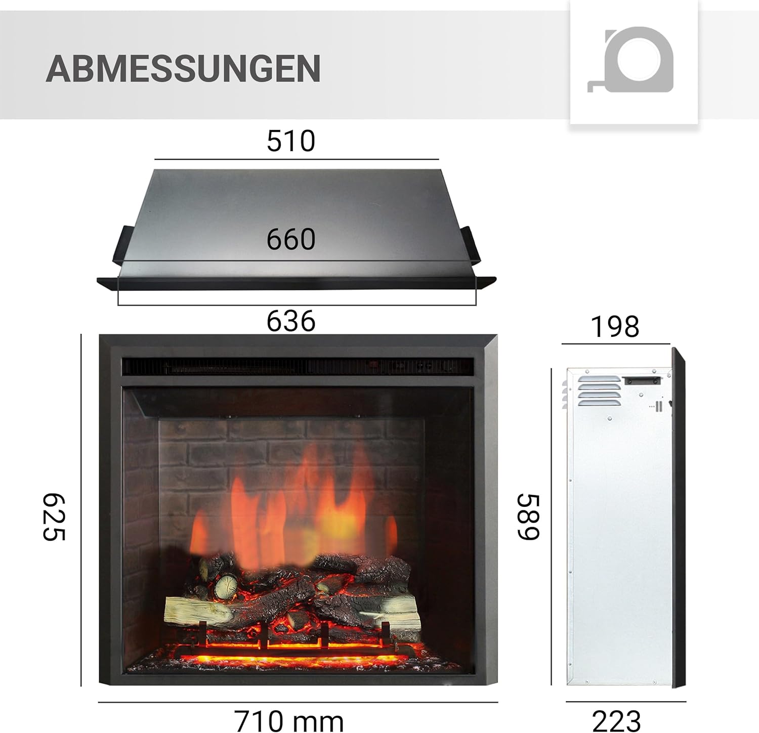RICHEN Calida 26'' Elektrokamin - Elektrischer Einbaukamin mit Heizung 1000/2000 W, realistischer 3D