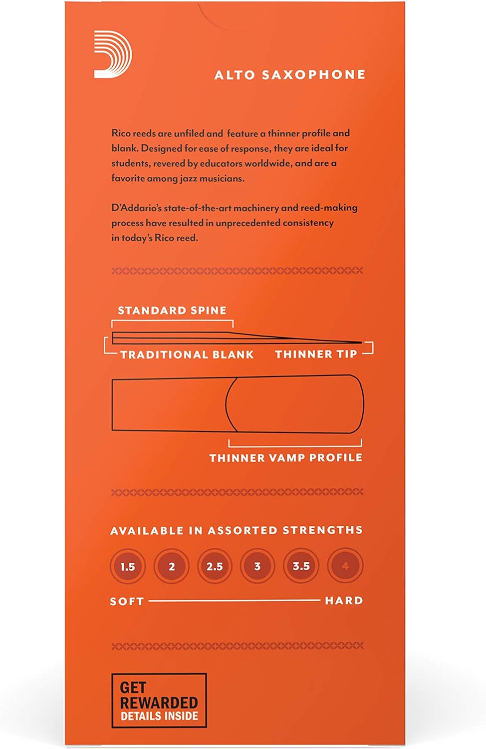 - EINFACHES SPIEL – Die dünne Spitze für eine leichte Ansprache und der klassische Schnitt (unfiled) für einen klaren, warmen Klang machen die D'Addario Woodwinds Eb-Altsaxophonblätter ideal für Schüler. Ausserdem sind sie bei Lehrern und