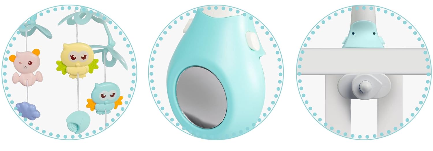 - đ¶ EYE-CATCHING: Das Karussell enthĂ€lt vier hĂ€ngende Spielzeuge, fröhliche LED-Lichter und einen Projektor, mit dem du leuchtende Sterne an die WĂ€nde und die Decke bringen kannst.