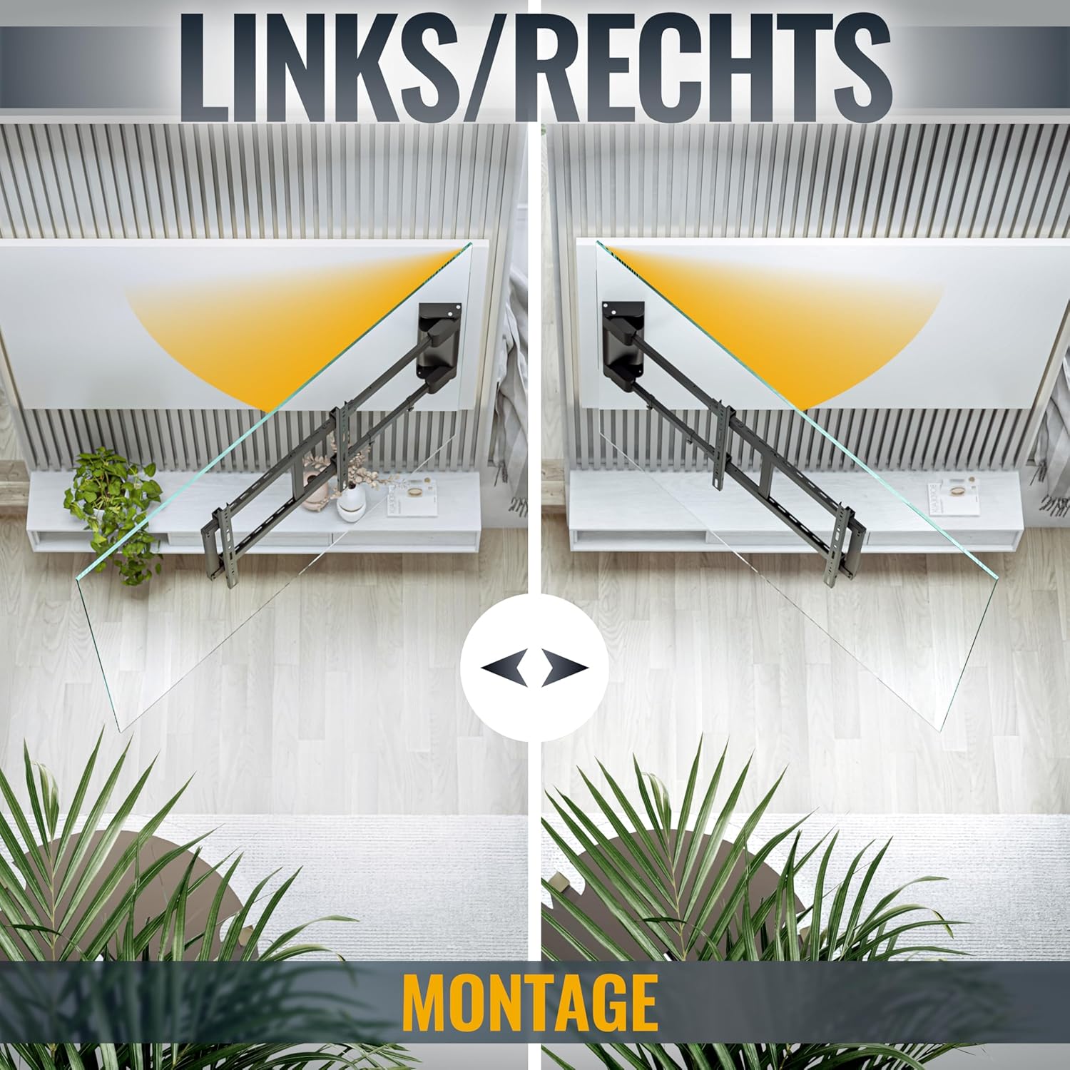 - 𝗙𝗨𝗡𝗞𝗧𝗜𝗢𝗡𝗘𝗡: Diese elektrische TV Wandhalterung mit Fernbedienung ist bis +90/-0 Grad ausklappbar wenn Bildschirmbreite max 149cm. Wandabstand zwischen 50mm - 990mm. Mit Motor und Ferngesteuert. Mit Memory Funktion