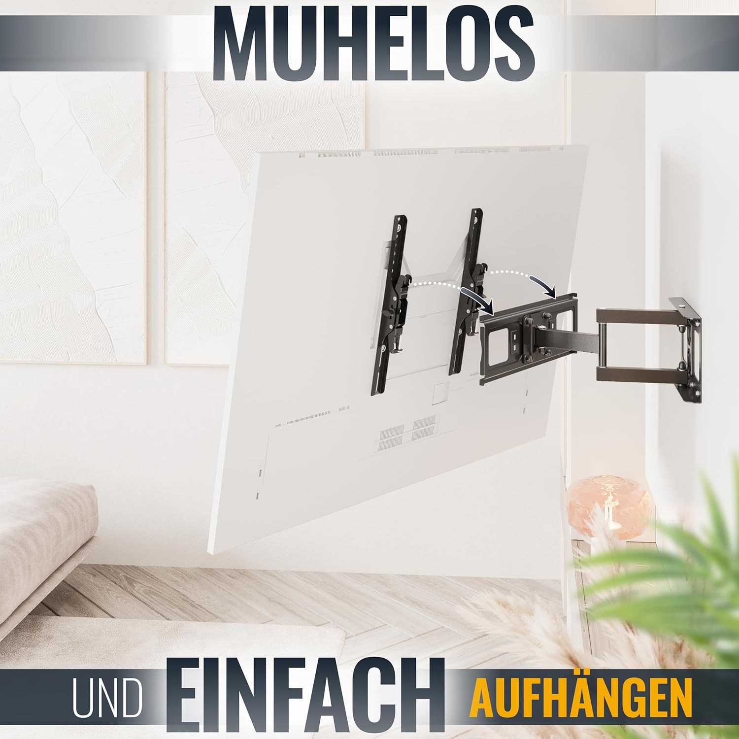 - FUNKTIONEN: Diese Fernseherhalterung ist bis 180 Grad schwenkbar bei Bildschirmbreite max 64cm. Der Neigebereich liegt bei +/- 15 Grad. Wandabstand zwischen 95 - 435 mm. Zur optimalen Einstellung nach der Montage ist TV Gerät um +/- 3 Grad drehbar.