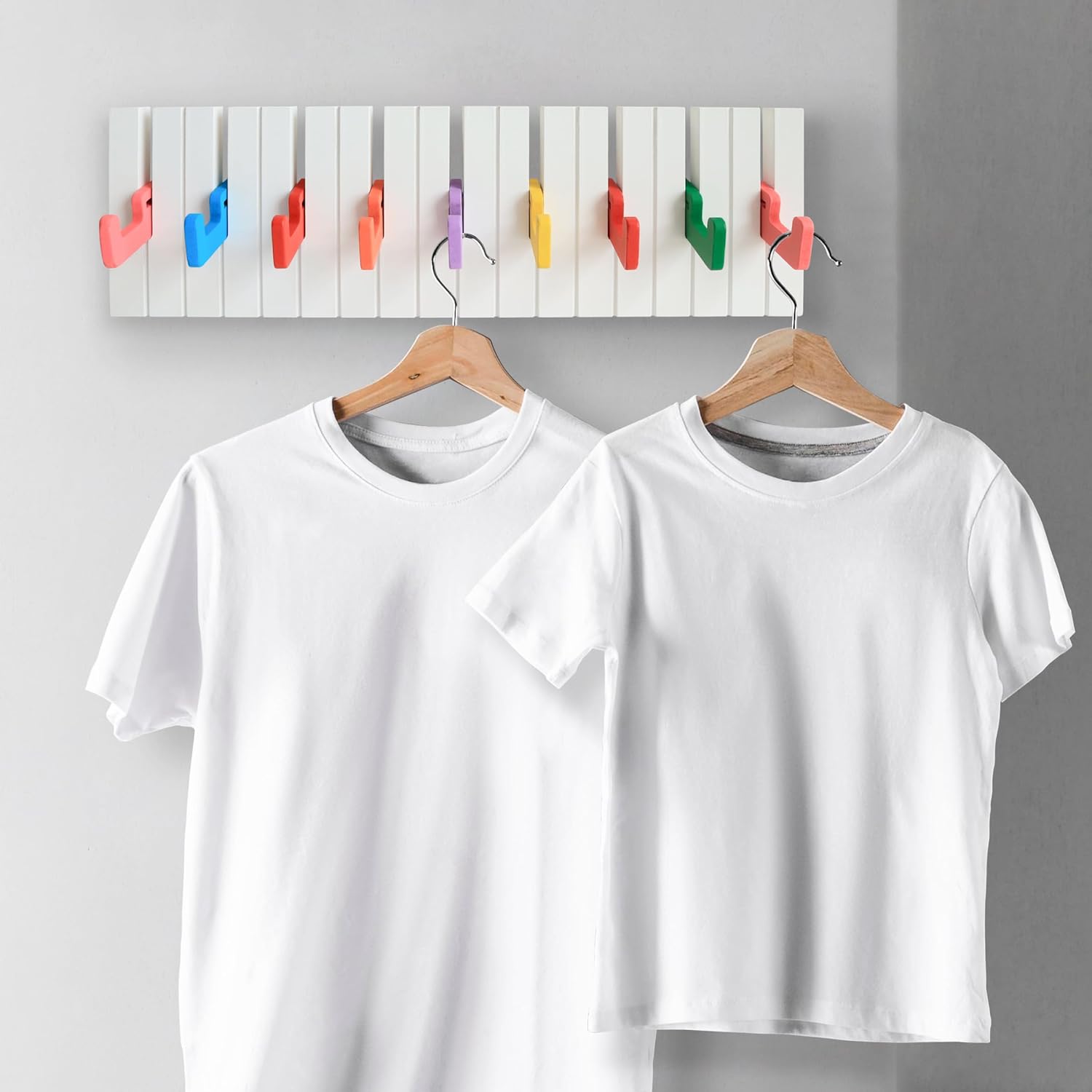 - UNVERWECHSELBARES DESIGN: Klappbare und moderne Kindergarderobe im stilvollen Klavier-Design. Mit 9 ausklappbaren Haken bietet unsere Hakenleiste genug Platz für Jacken, Mäntel, Schals und Hüte.
