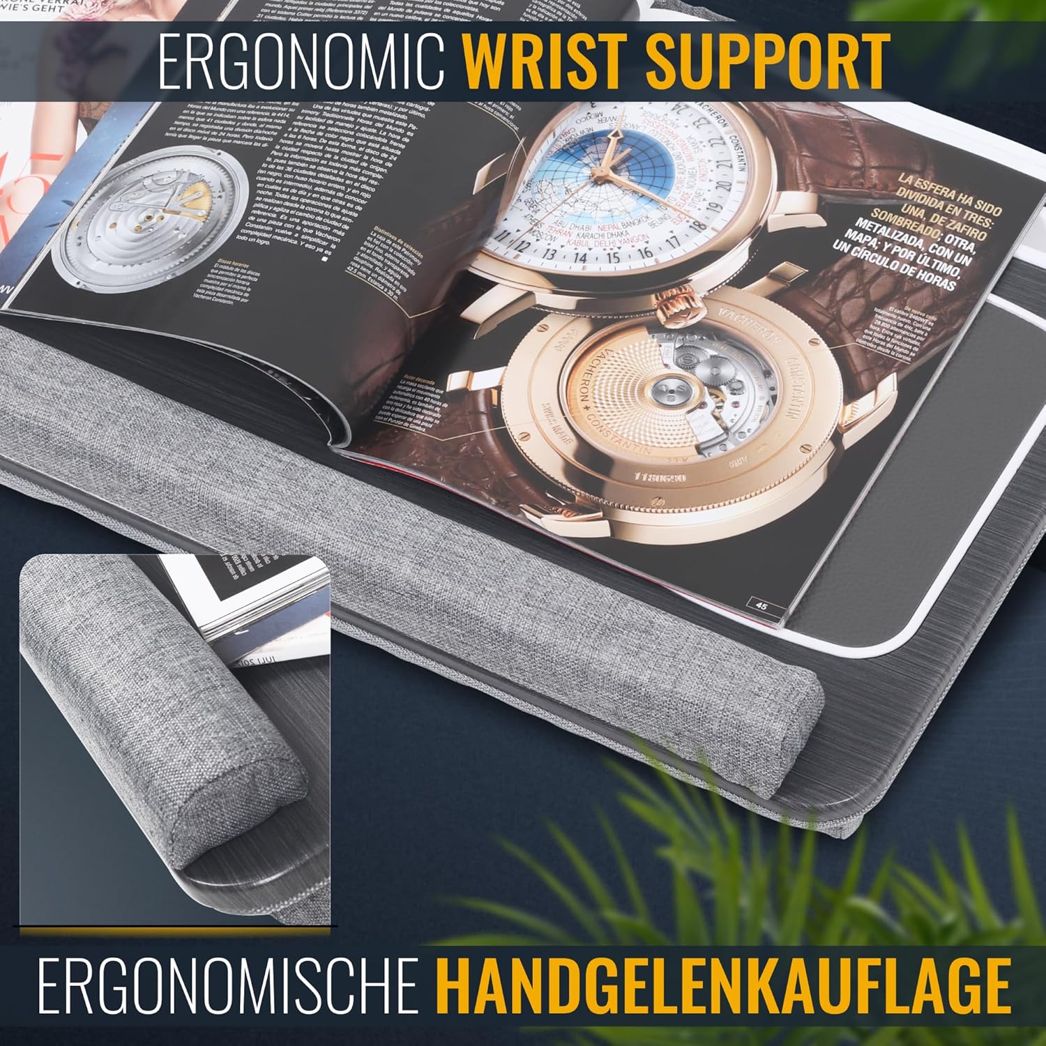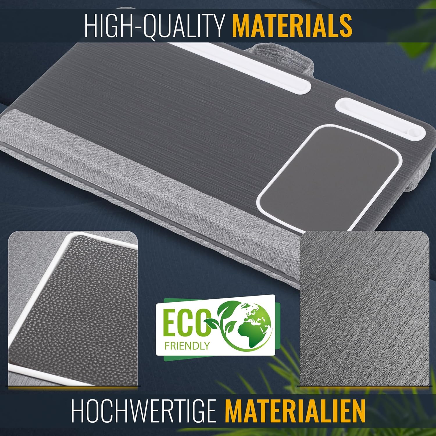 • ERGONOMISCH: Das Polster auf der Platte dient als Handgelenkstütze. Mit dem weichen Kissen an der Unterseite können Sie die Laptop Erhöhung auch über einen längeren Zeitraum auf Ihrem Schoss platzieren.