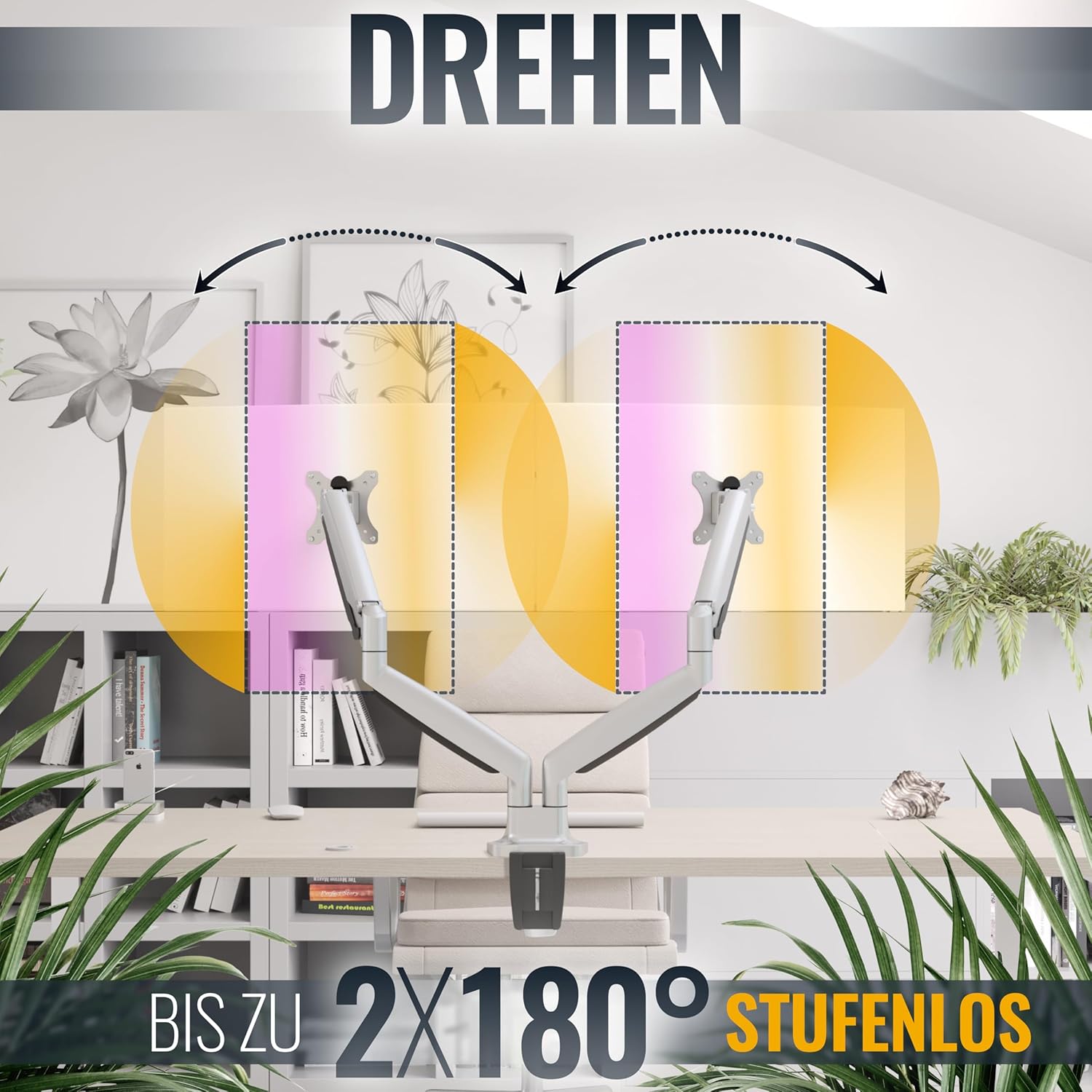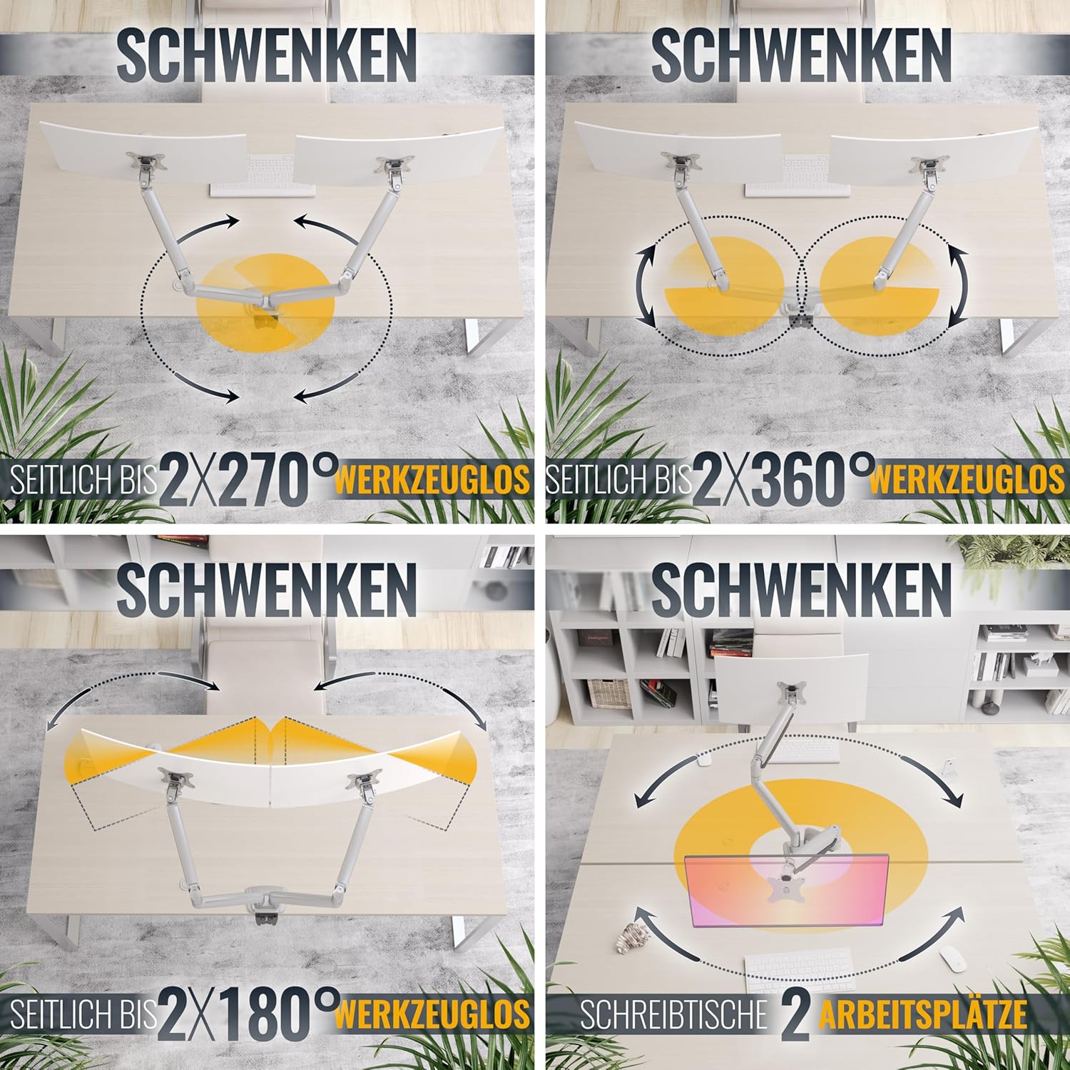 • 𝗞𝗔𝗣𝗔𝗭𝗜𝗧Ä𝗧: Max Monitorbreite 900mm. Belastbarkeit der Zweifach Monitorhalterung min 1Kg - max 9Kg je Schwenkarm - Mindestgewicht erforderlich!