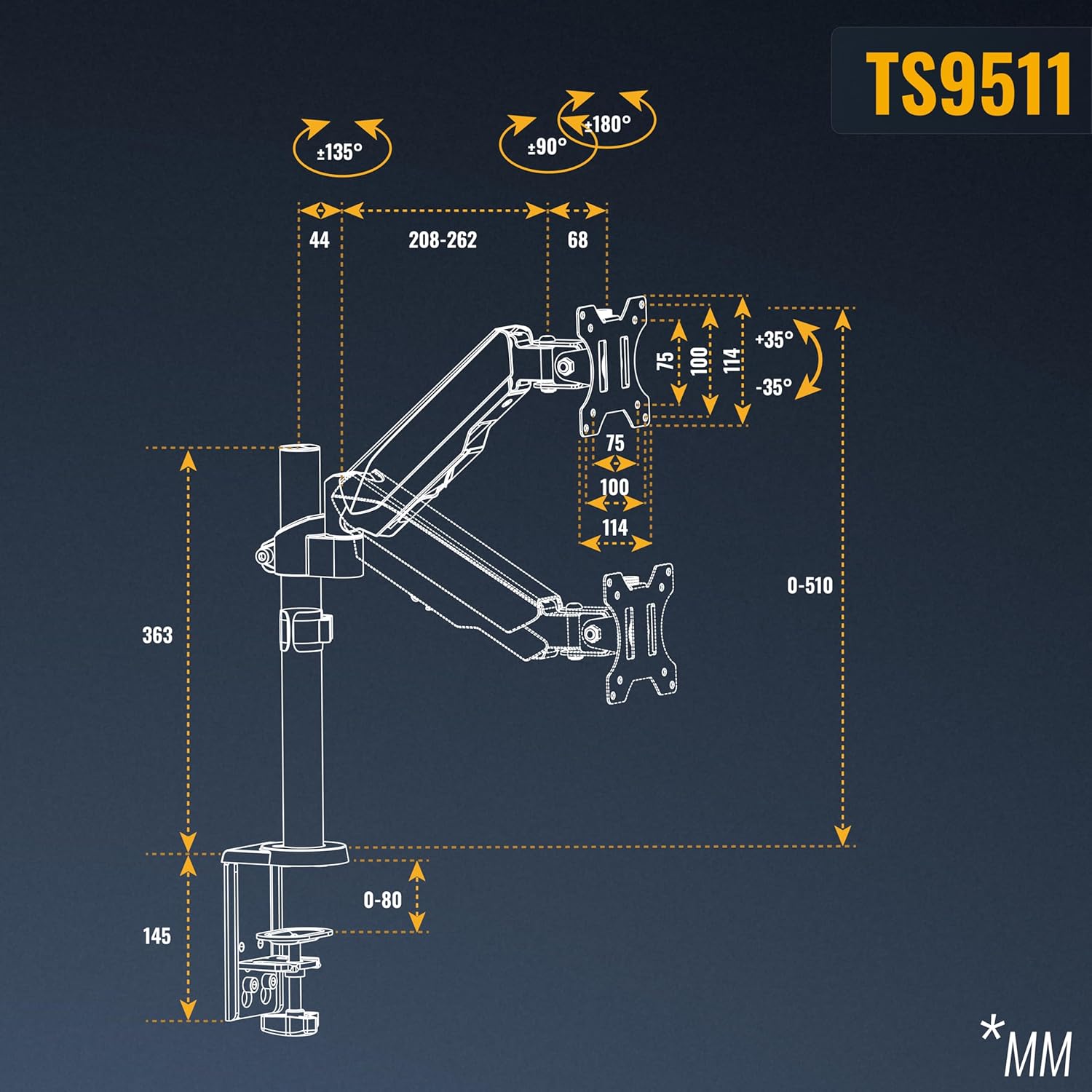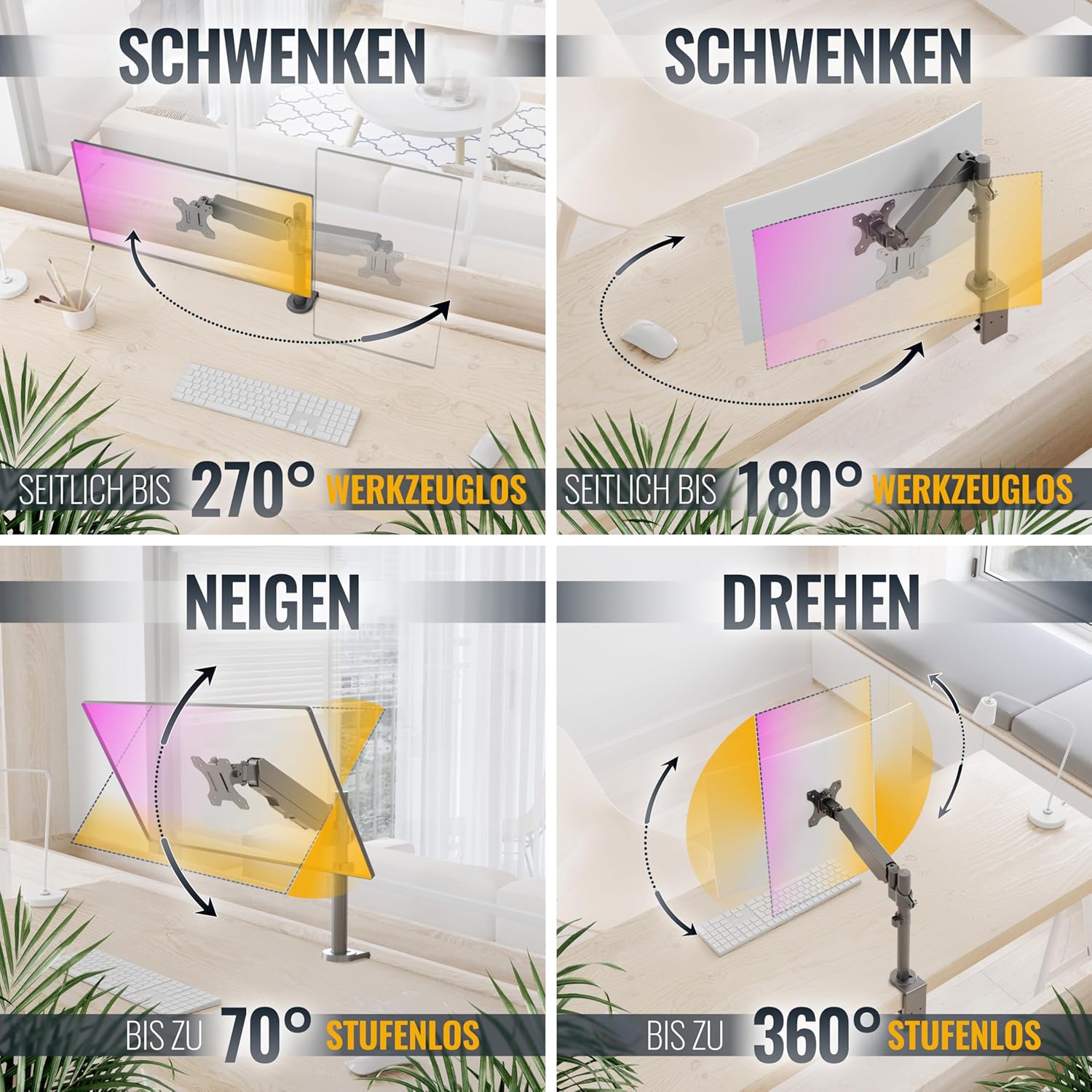 - 𝗞𝗔𝗣𝗔𝗭𝗜𝗧Ä𝗧: Belastbarkeit der Monitorhalterung beträgt min 1kg - max 8kg. Montage per Tischklemme an der Tischkante. Standfuss auch für curved Flatscreens geeignet - Gasfeder Mechanismus erfordert Mindestgewicht!