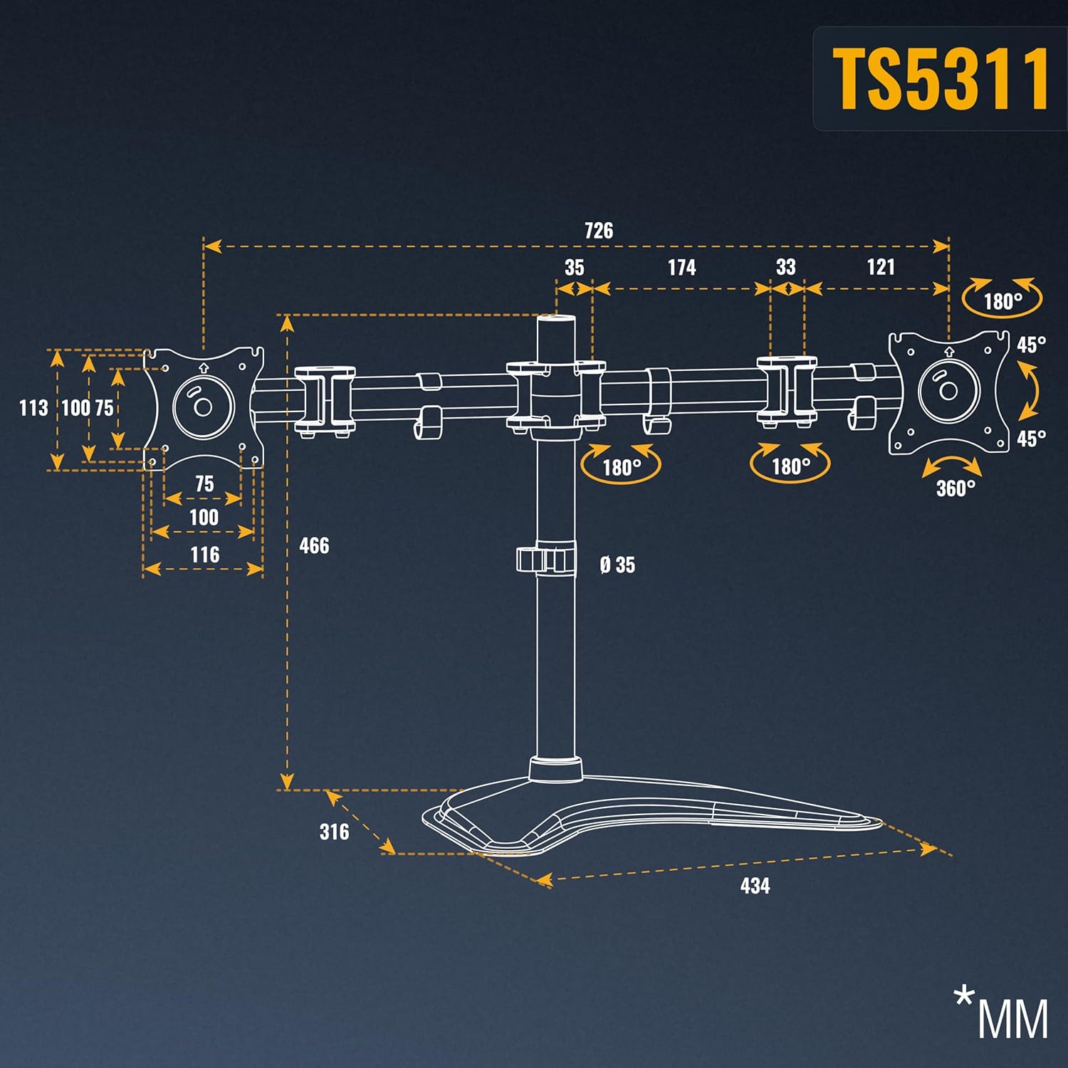 - 𝗞𝗔𝗣𝗔𝗭𝗜𝗧Ä𝗧: Max Monitorbreite 720mm bei Montage von 2 Monitoren. Belastbarkeit der Zweifach Monitorhalterung max 8Kg je Schwenkarm
