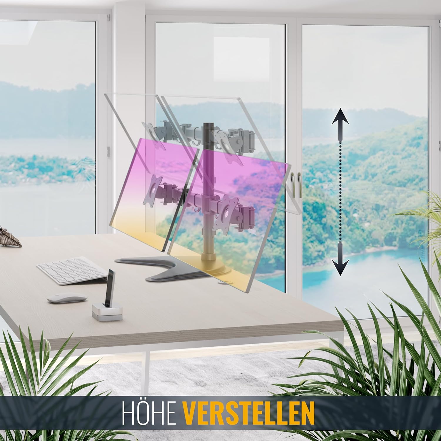 - 𝗩𝗘𝗥𝗪𝗘𝗡𝗗𝗨𝗡𝗚: Eine Multimonitor Bildschirmhalterung sorgt in jedem Home Office für Ordnung auf dem Schreibtisch oder Gamingstation. Diese Bildschirmständer Universalhalterung eignet sich für jeden Flachbildschirm mit VESA
