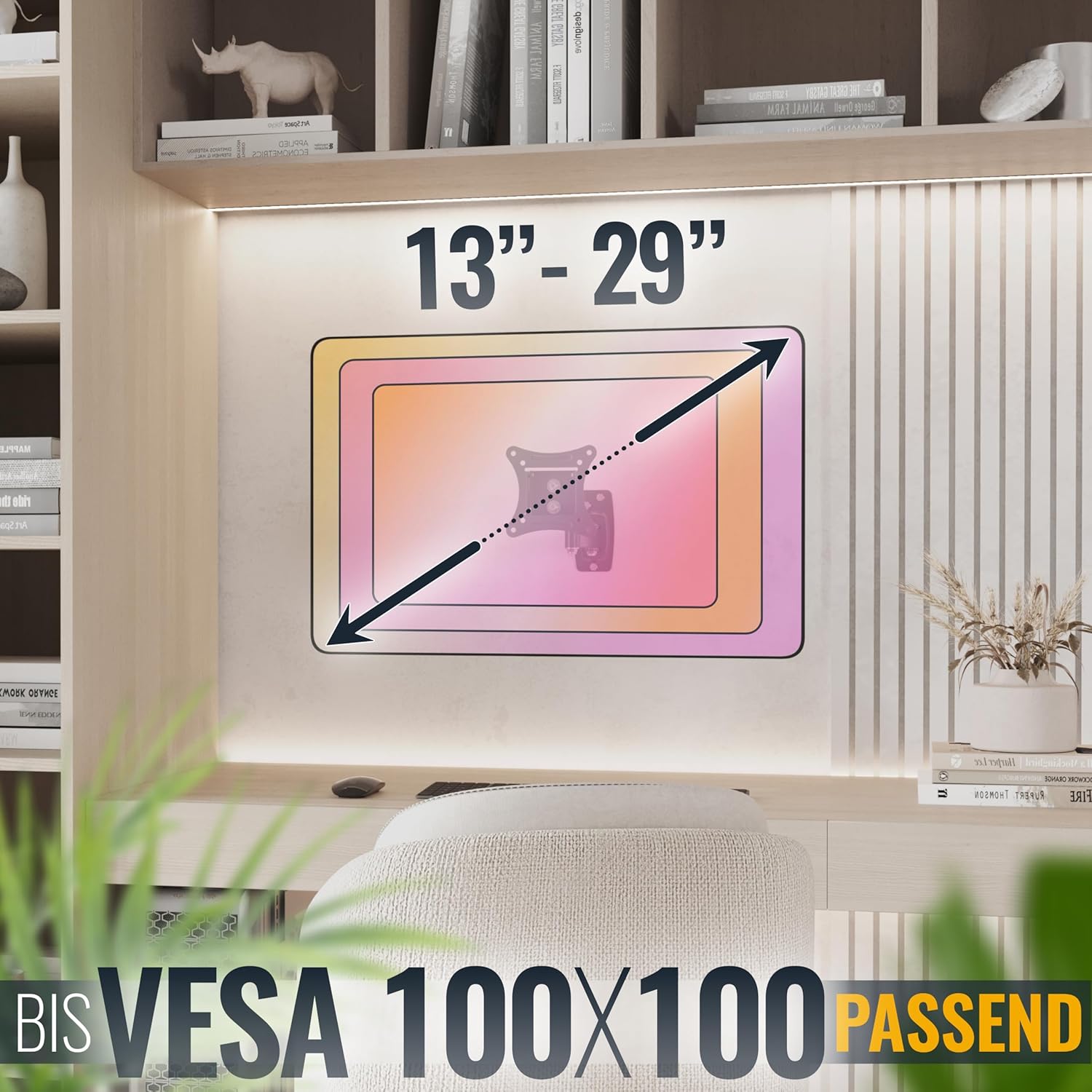 - EMPFOHLEN FÜR: Zur Aufhängung passende Bildschirm Diagonale 33cm/13" 43cm/17" 48cm/19" 53cm/21" 56cm/22" 61cm/24" 69cm/27" 74cm/29" Zoll