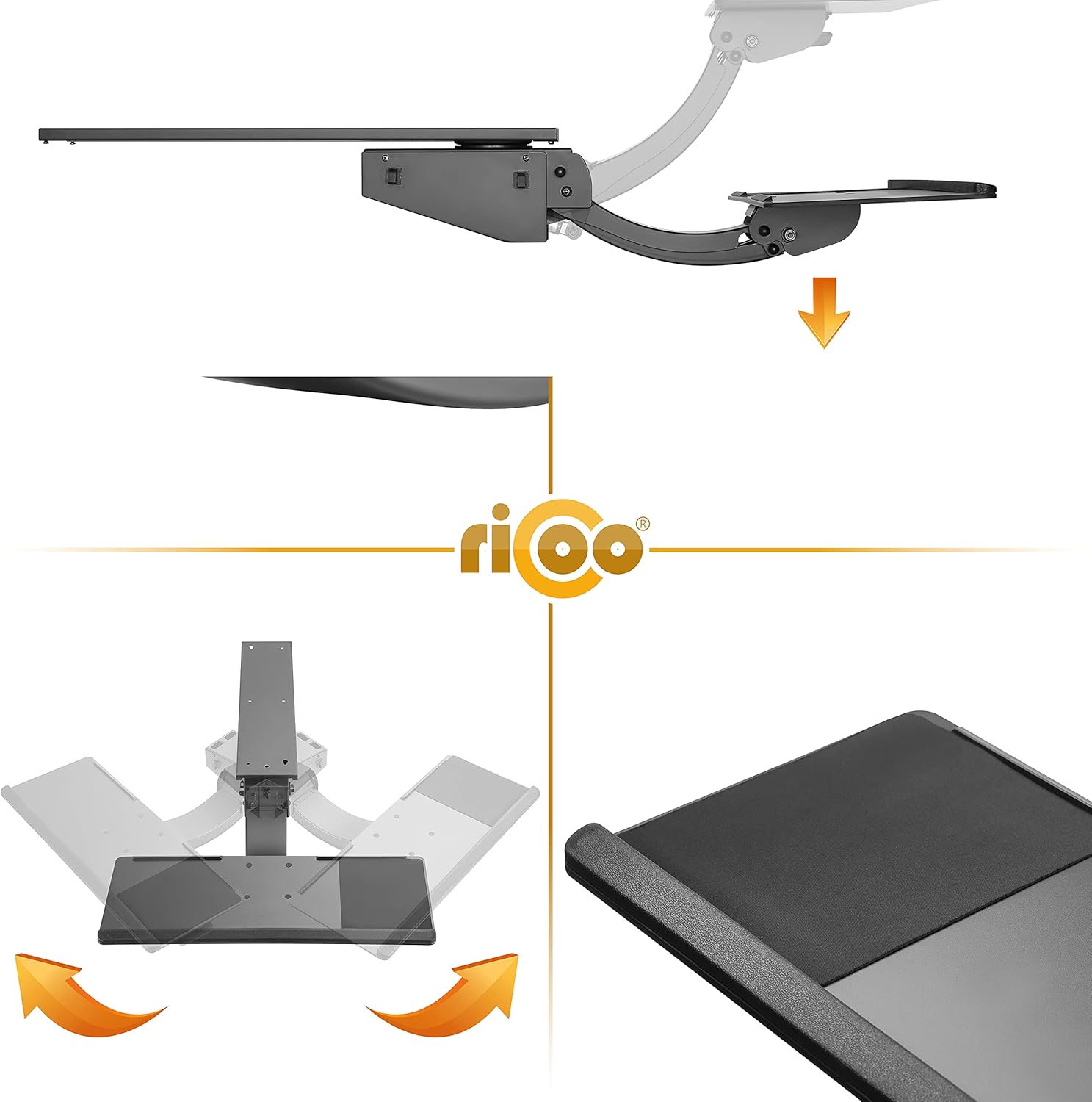 - ✅ FUNKTIONEN: Reichweite Ausziehbar 710mm - 1130mm, Neigung +13/-15 Grad, Schwenkbereich +/-180 Grad, Höhenverstellbar: Höhe 145-455mm, Hohe Belastbarkeit 2kg max, Ablagefläche 670mm x 255mm, Mit Gel Pad zur Handgelenk Auflage