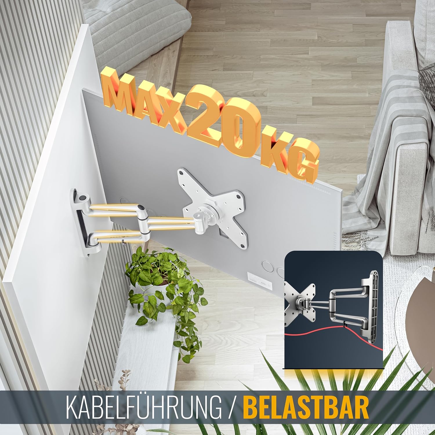 - 𝗙𝗨𝗡𝗞𝗧𝗜𝗢𝗡𝗘𝗡: Diese Fernseherhalterung ist bis 180 Grad schwenkbar bei max Bildschirmbreite von 70cm. Der Neigebereich liegt bei +/-15 Grad. Der Wandabstand ist flexibel 103mm - 423mm