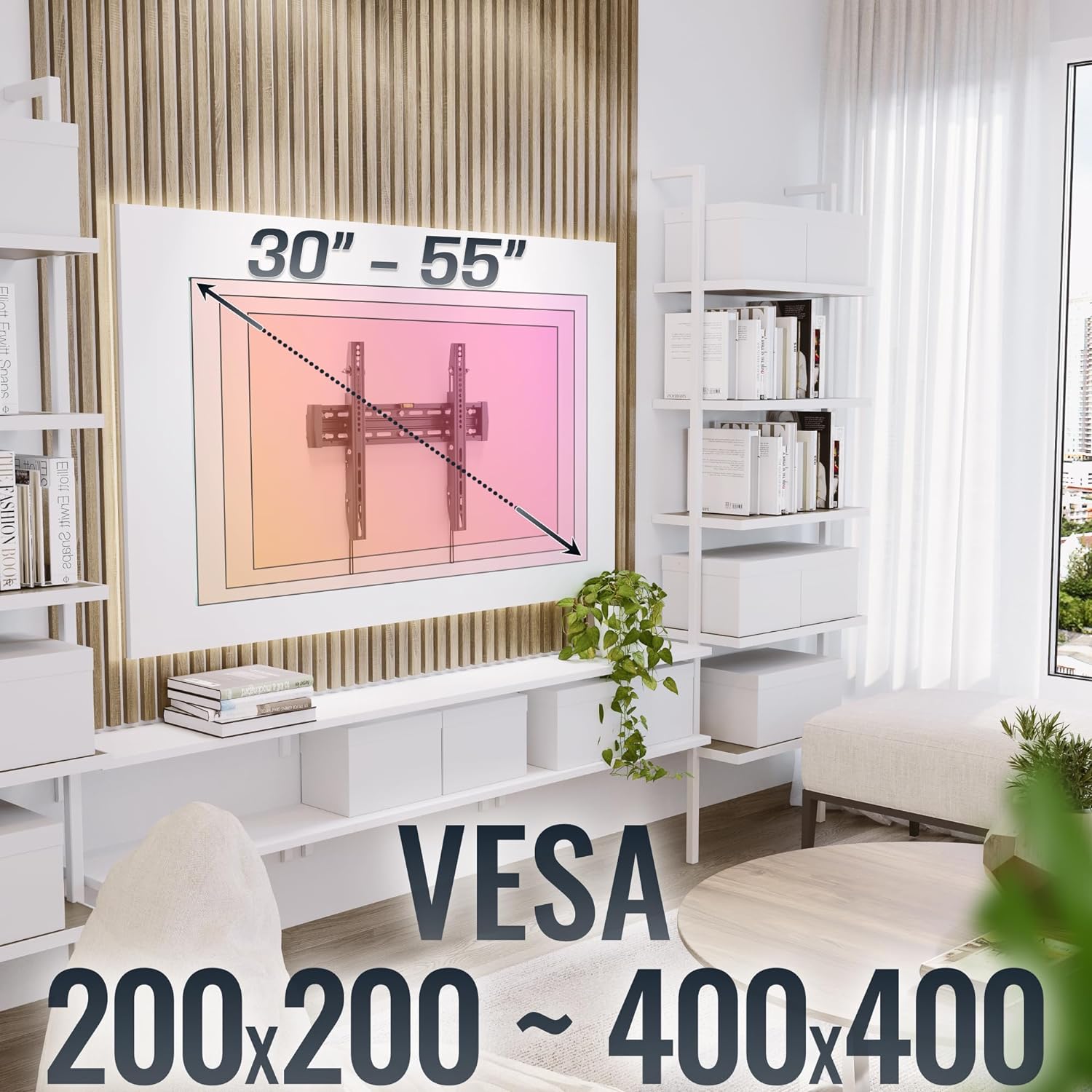 - 𝗨𝗡𝗧𝗘𝗥𝗦𝗧Ü𝗧𝗭𝗧𝗘 𝗩𝗘𝗦𝗔-𝗡𝗢𝗥𝗠𝗘𝗡: Der TV Wandhalter hat eine hohe Belastbarkeit von bis zu 50kg - 200x200 300x200 300x300 400x200 400x400