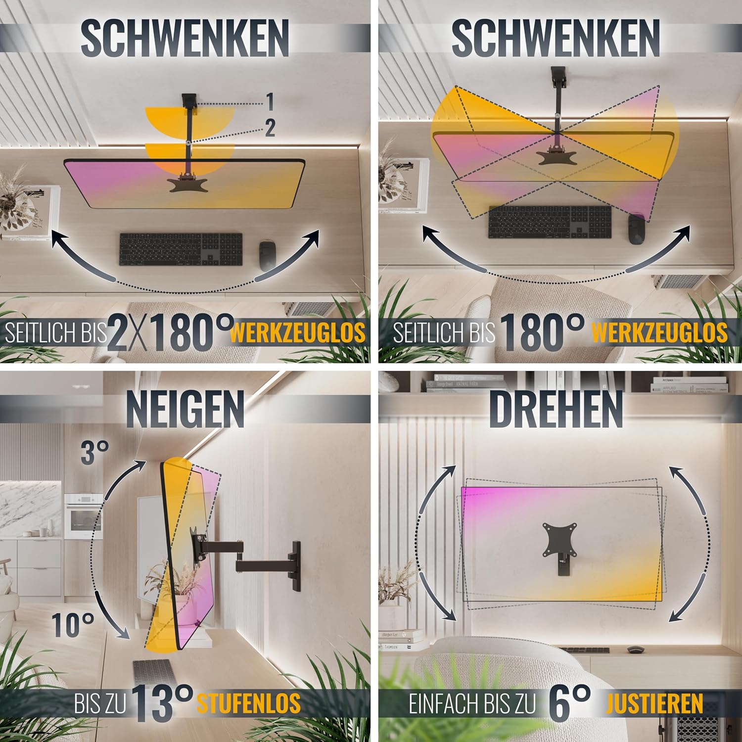 - 𝗨𝗡𝗜𝗩𝗘𝗥𝗦𝗔𝗟𝗘: Wandhalterung geeignet für alle Hersteller und Marken, sowie gebogene Bildschirme - wenn die Position und Grösse der VESA-Norm sowie das Gewicht des TV-Monitors unterstützt werden!