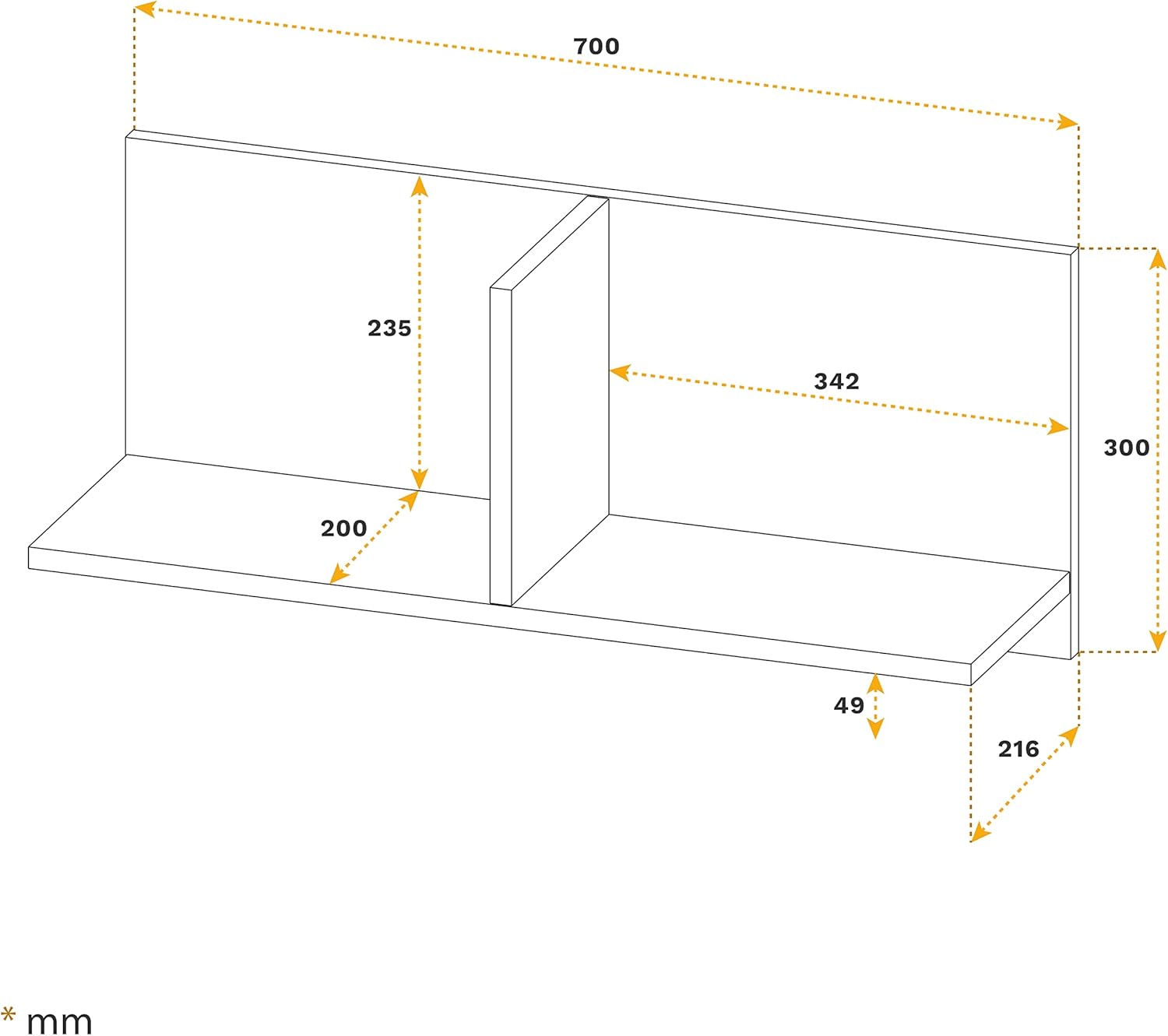 • 𝗪𝗜𝗖𝗛𝗧𝗜𝗚: Dieses Möbelstück ist modern, freischwebend und aus Pressspanplatten gefertigt. Es ist nur für den Innenbereich geeignet. Masse: 700 mm breit, 300 mm hoch, 216 mm tief.
