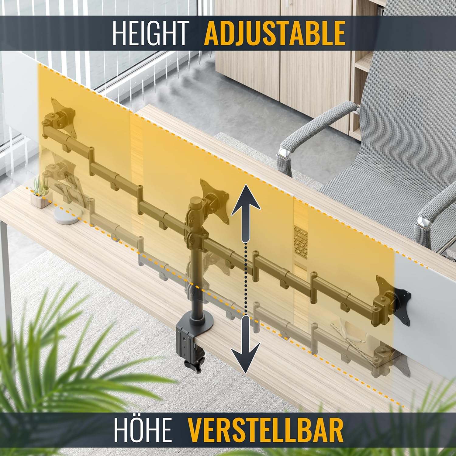 - 𝗞𝗔𝗣𝗔𝗭𝗜𝗧Ä𝗧: Max Monitorbreite 660mm bei Montage von 3 Monitoren. Belastbarkeit max 8Kg je schwenkarm
