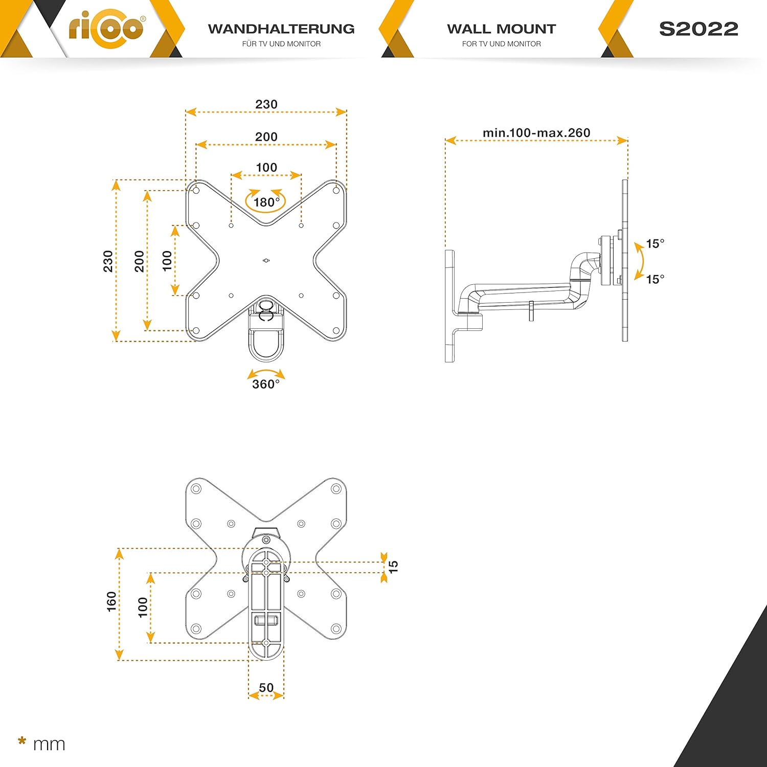 - 𝗘𝗠𝗣𝗙𝗢𝗛𝗟𝗘𝗡 𝗙Ü𝗥: Zur Aufhängung passende Bildschirm Diagonale 38cm/15" 43cm/17" 48cm/19" 53cm/21" 56cm/22" 61cm/24" 69cm/27" 74cm/29" 81cm/32" 89cm/35" 102cm/40" 107cm/42" Zoll