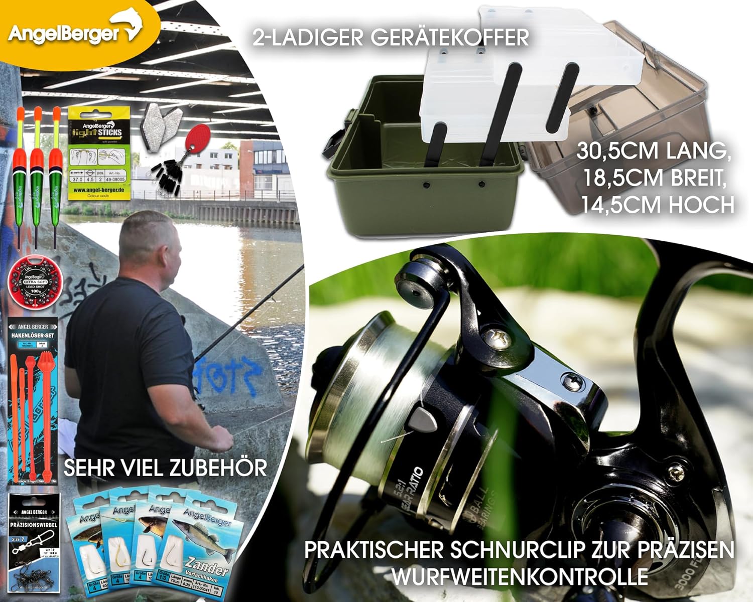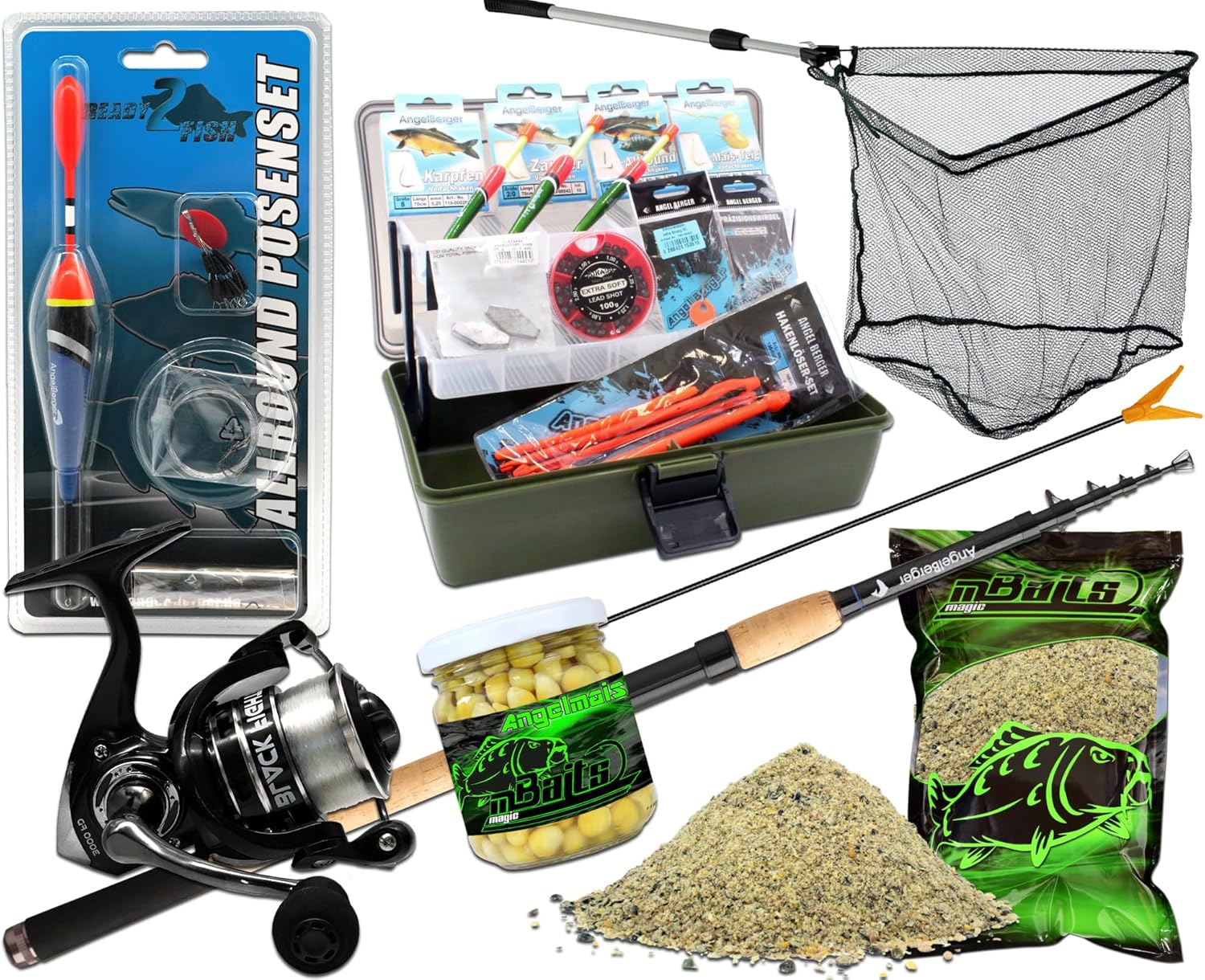 - Riesiges Angelset Angelausrüstung Rute Gerätekoffer Kescher Angelkomplettset
