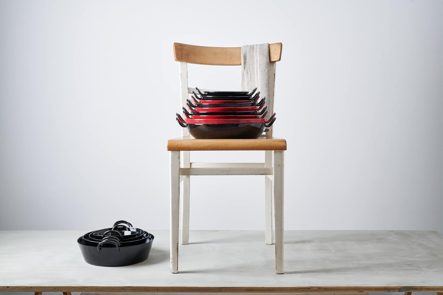 - Servierpfanne mit zwei Griffen, aus schwarzer Emaille, Durchmesser (oben innen) 20