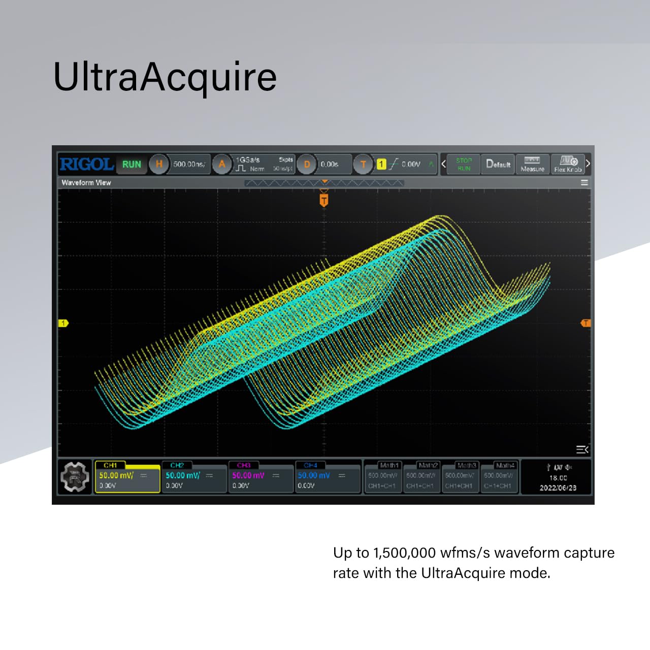• Bis zu 2 GSa/s Echtzeit-Abtastrate; max. Speichertiefe: 100 Mpts (optional); Vertikaler Empfindlichkeitsbereich: 500 μV/div bis 10 V/div; Bis zu 1.500.000 wfms/s Signalerfassungsrate mit dem UltraAcquire-Modus; 10,1 '' 1280 * 800 HD-Touch-Display
