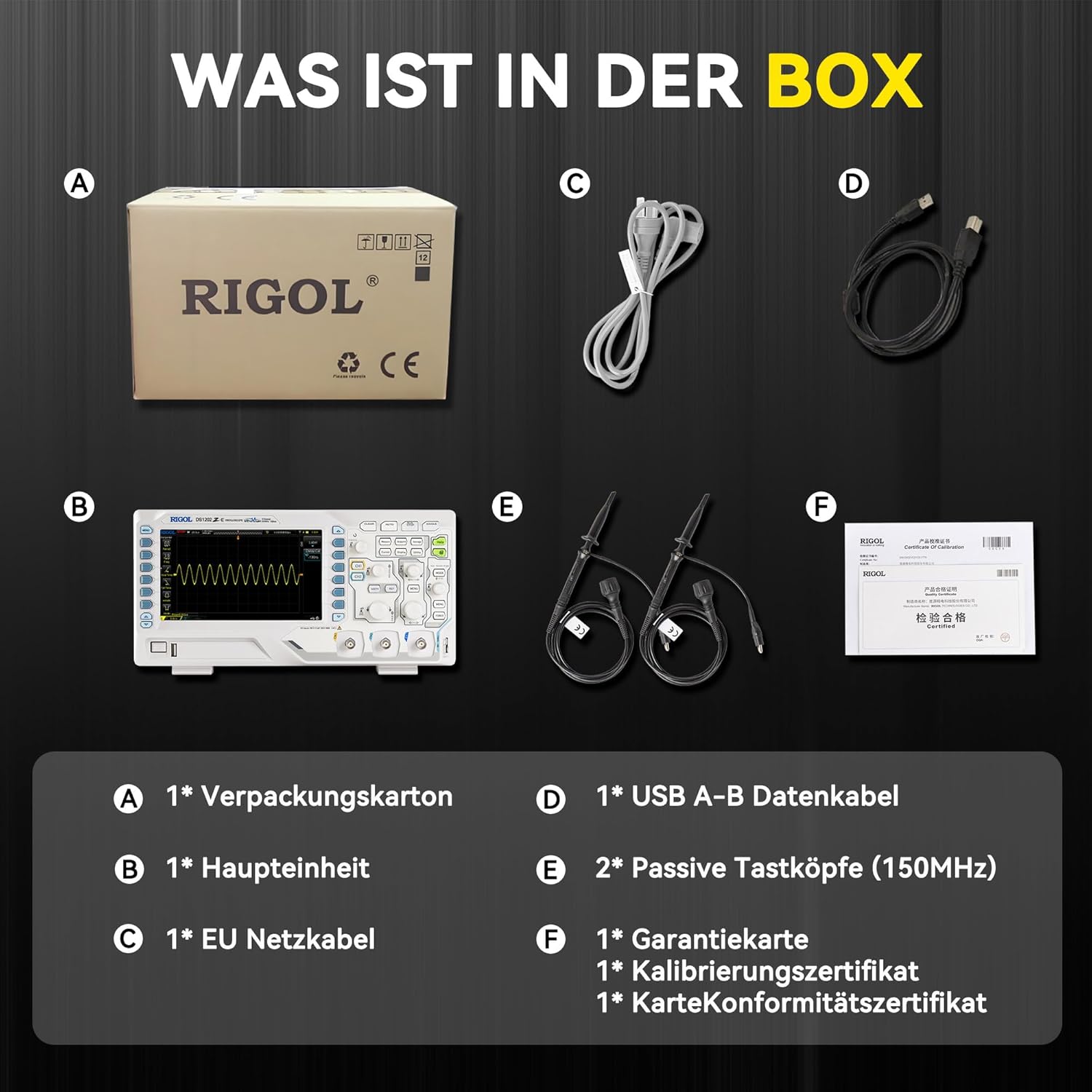 - Geringes Grundrauschen, vertikaler Skalenbereich: 1 mV / Div bis 10 V / Div. Verschiedene Schnittstellen: USB Host & Device, LAN (LXI), AUX. Entspricht den Instrumentenstandards der LXI CORE 2011 DEVICE-Klasse und unterstützt die Fernsteuerung von Befehlen. Zum Zubehör gehören 2 Tastköpfe , ein USB-Kabel, ein Netzkabel. Bedienungsanleitung und datasheet in PDF: https://rigolshop.eu/pub/media/wysiwyg/download/oscilloscope.rar