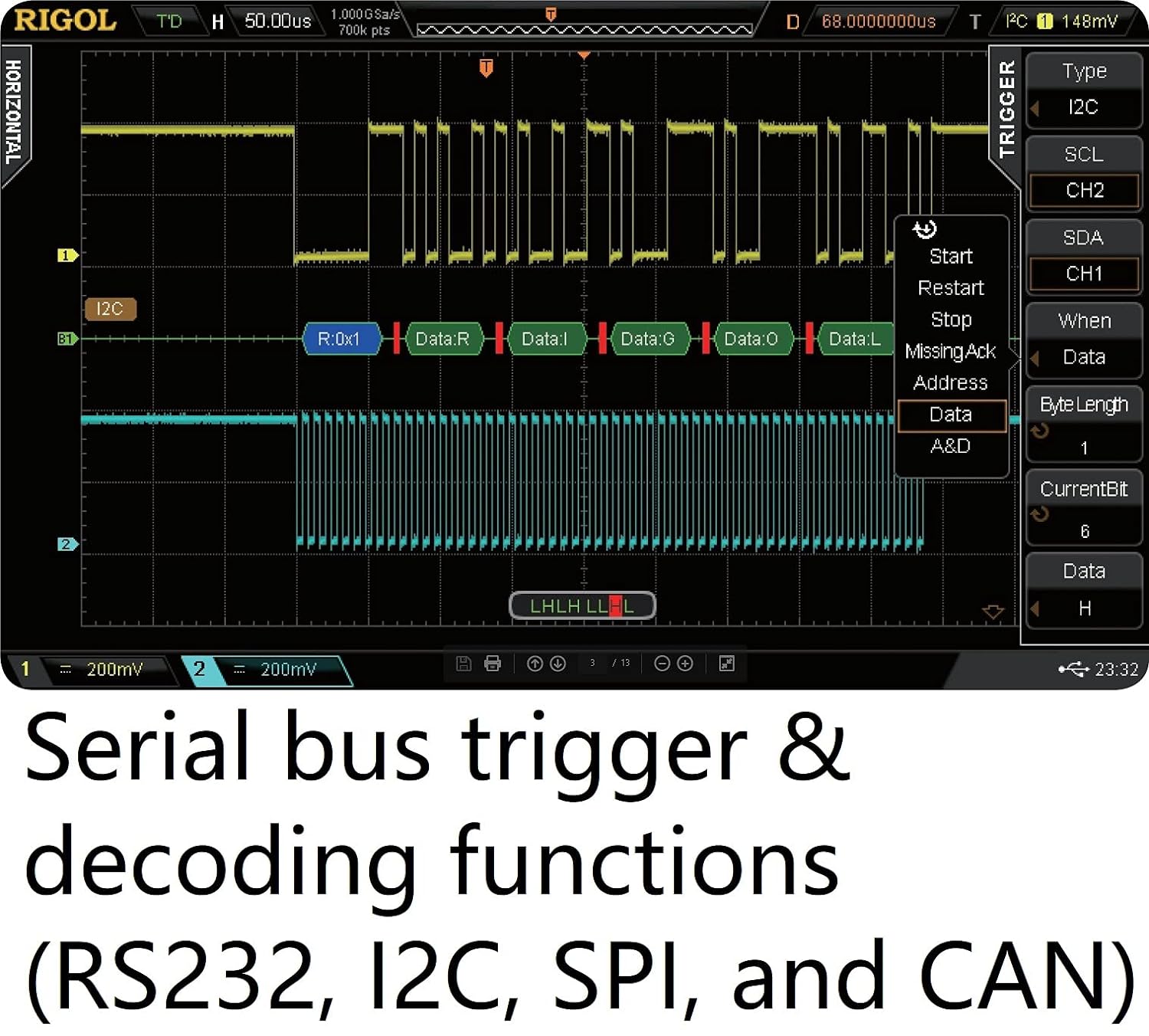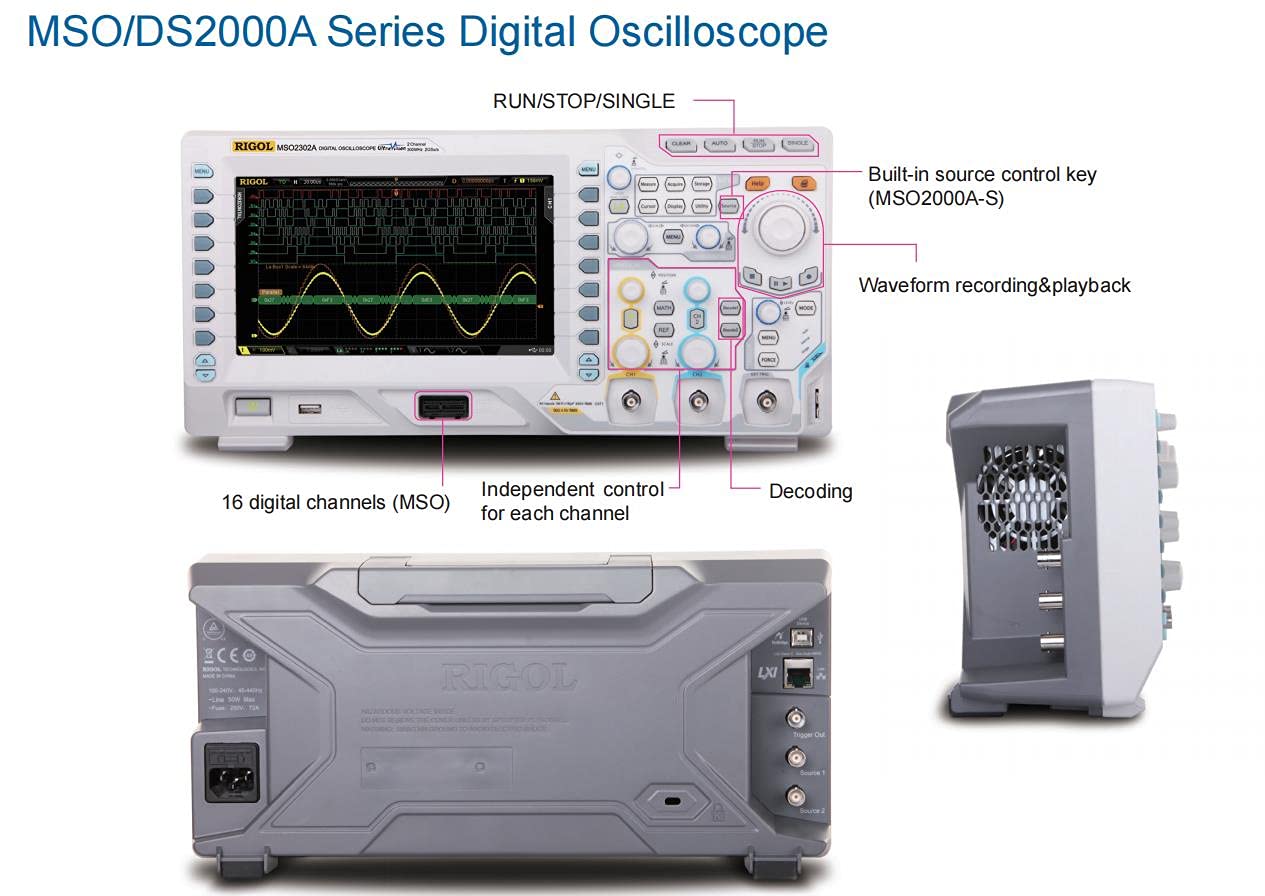 RIGOL DS2102A Digitaloszilloskop, 2 Kanäle, 100MHz, 2Gsa/s, 56Mpts, 52000wfms/s, freie Trigger und D