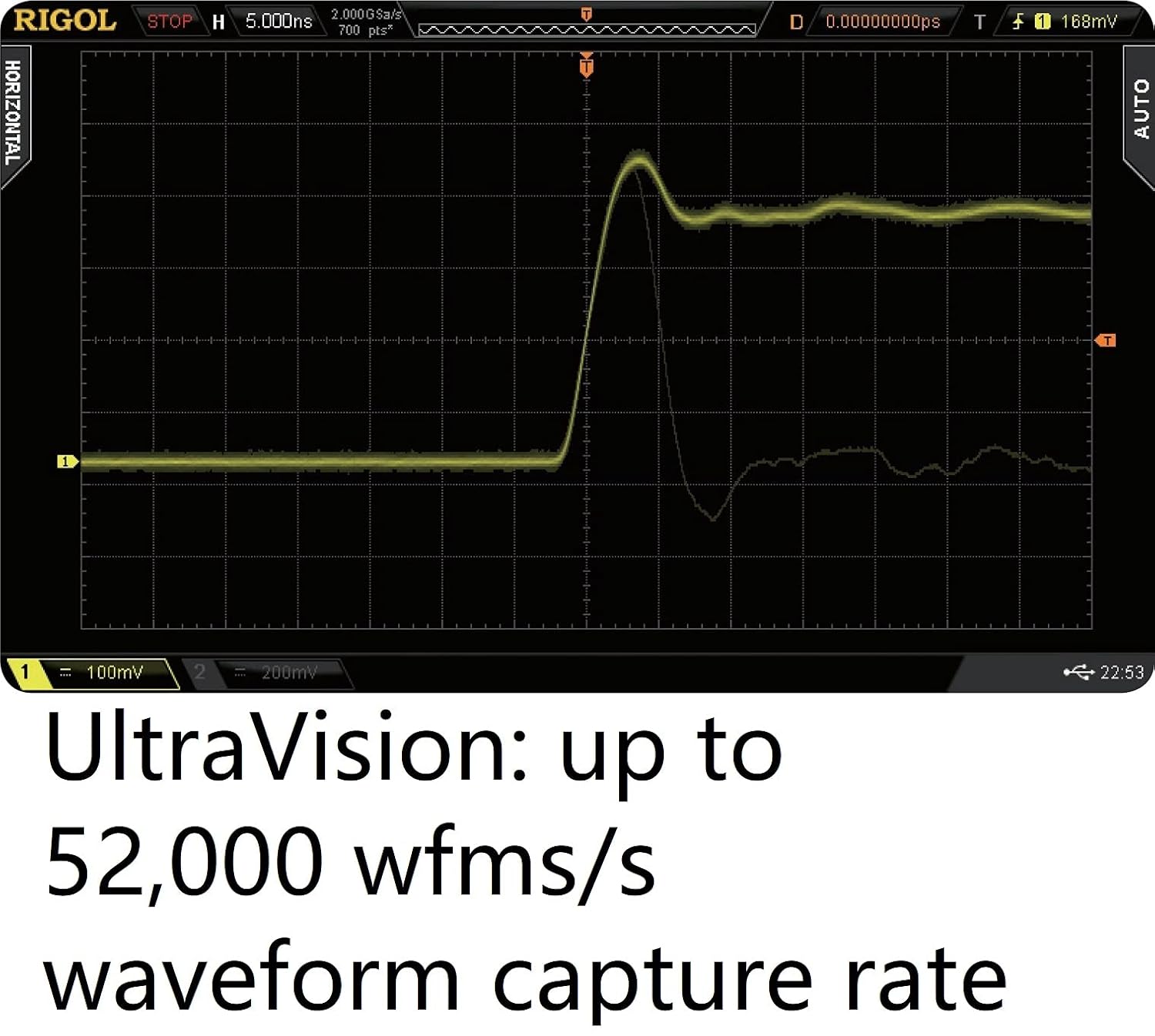 - Bis zu 52.000 Wfms / s Wellenform-Erfassungsrate, sodass Benutzer Sofort-Signale sowie abnormale Signale schneller erfassen können. Bis zu 65.000 aufgezeichnete Wellenformen können bequem aufgezeichnet, angezeigt und analysiert werden. Dies trägt auch
