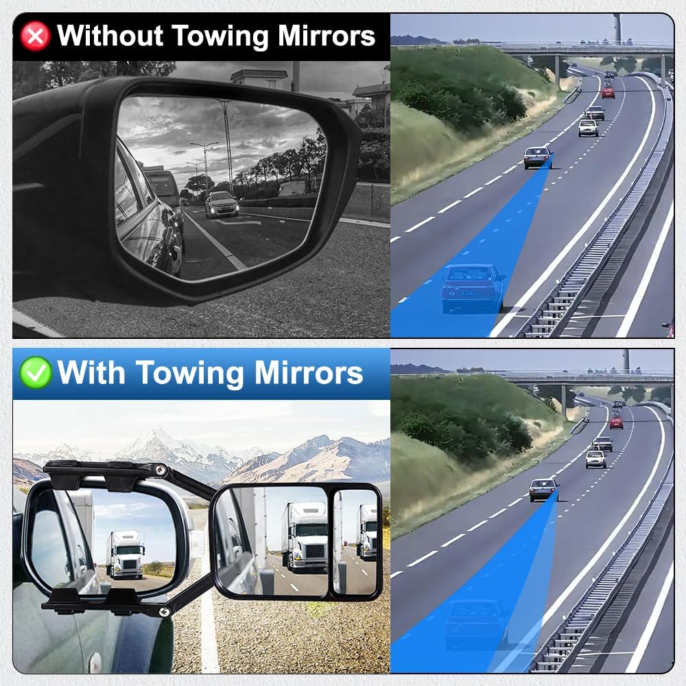 - 【Exzellente Qualität】--- Die Abschleppspiegel sind hauptsächlich aus ABS und Glas hergestellt. Das ABS-Material ist stark und verschleissfest, nicht leicht zu deformieren, lange Lebensdauer. Die Spiegel sind aus Glas hergestellt und haben eine gute