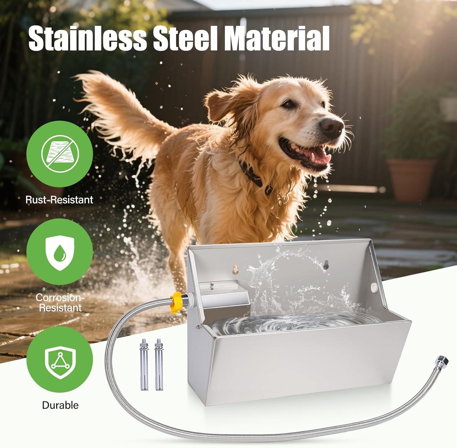 - 【Edelstahl Material】: Der Hundewasserer besteht aus Edelstahl, rostdicht, langlebig, verschleissbeständig und leicht zu reinigen; 1/2 Zoll Schwimmventil ist aus hochwertigem Kunststoff für Kompaktheit und Haltbarkeit hergestellt. Die Kanten sind
