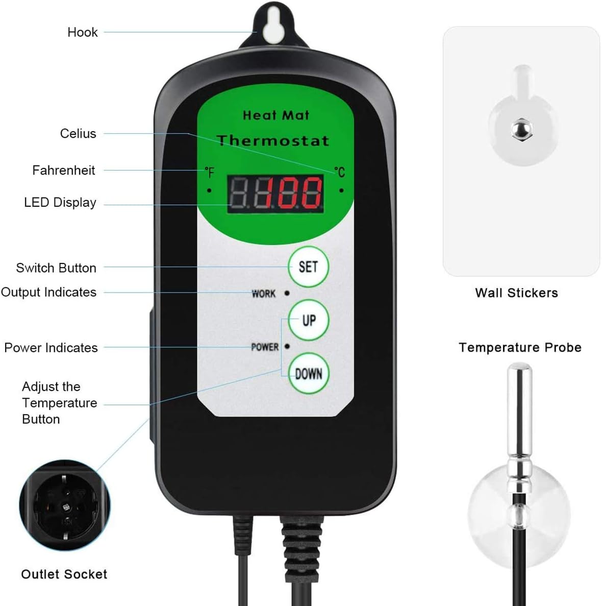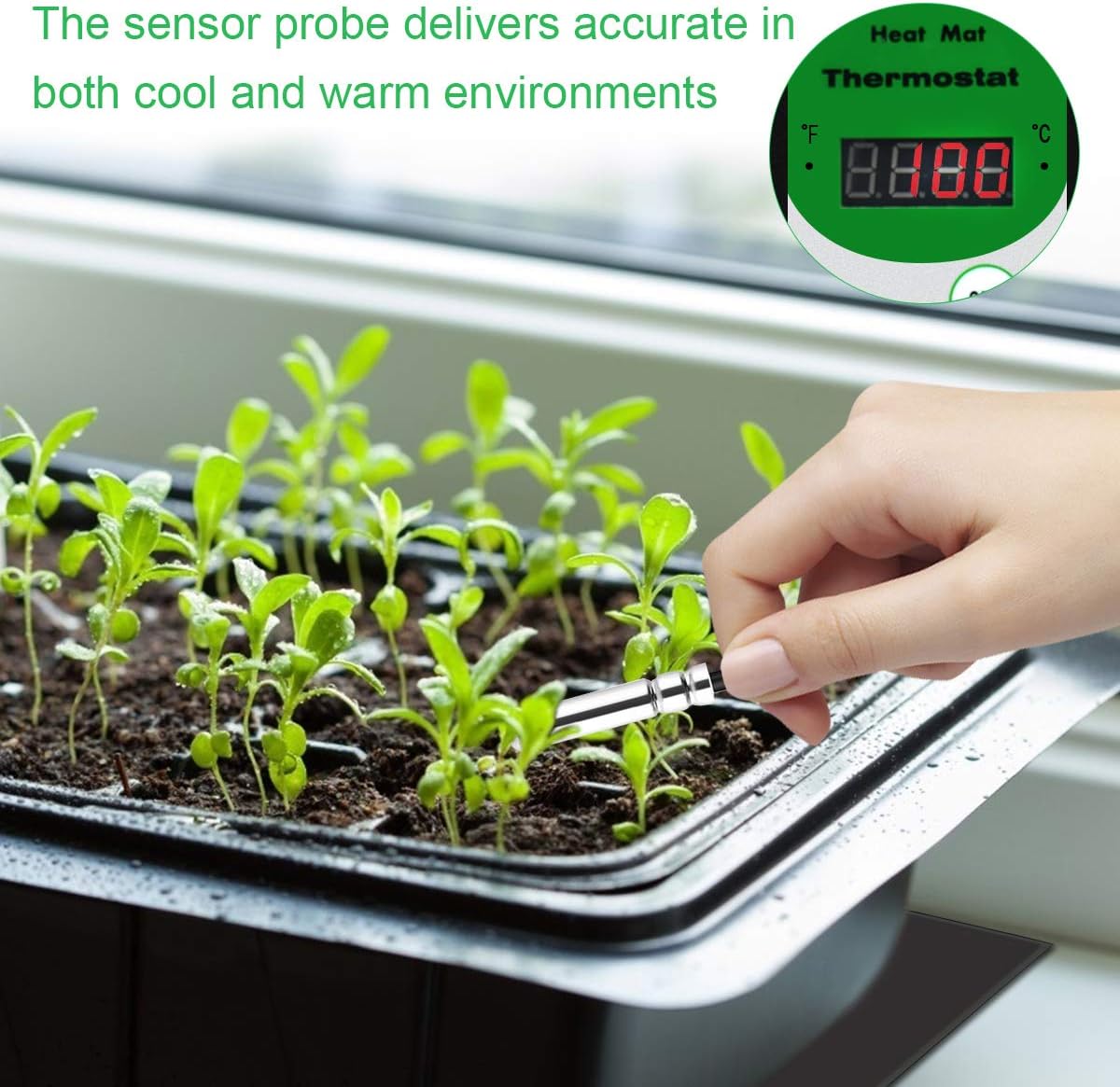 - Temperaturregelung: Unser digitaler Thermostatregler ist mit fast allen Sämlingswärmematten kompatibel. Die Thermostatsensorsonde liefert genaue Messwerte sowohl in kalten als auch in warmen Umgebungen. Hält eine stabile Temperatur zwischen 68 ° F / 20 ° C und 108 ° F / 42 ° C für den professionellen Bedarf.