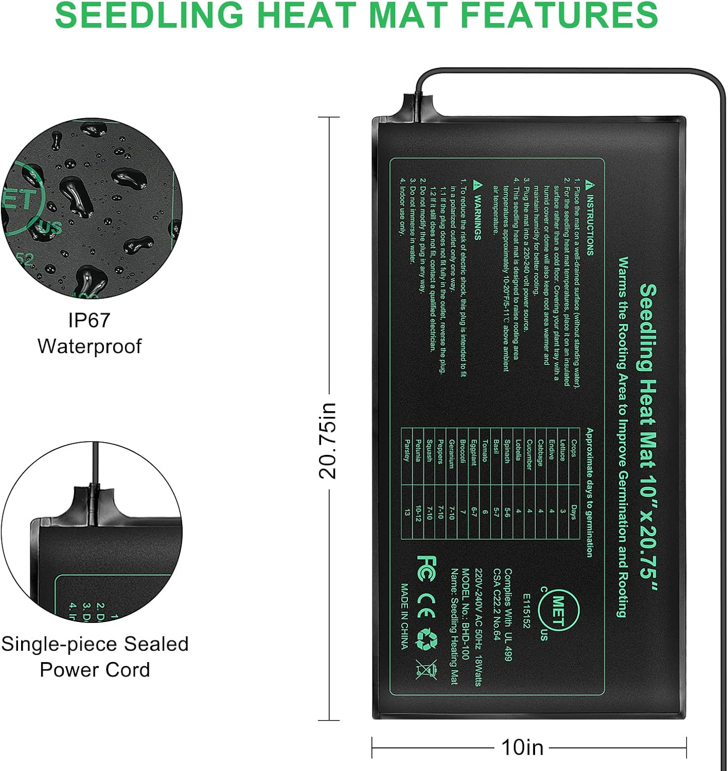 - Halten Sie Ihre Samenwurzel warm: Unsere neu gesäte Wärmematte erwärmt automatisch den Wurzelbereich von 10 bis 20 ° F bei einer einzigartigen Temperatur. Zum Beispiel kann es in Innenräumen oder in einem Gewächshaus verwendet werden und liefert genug Wärme, um Ihre Pflanze energetisch und gesund zu halten.