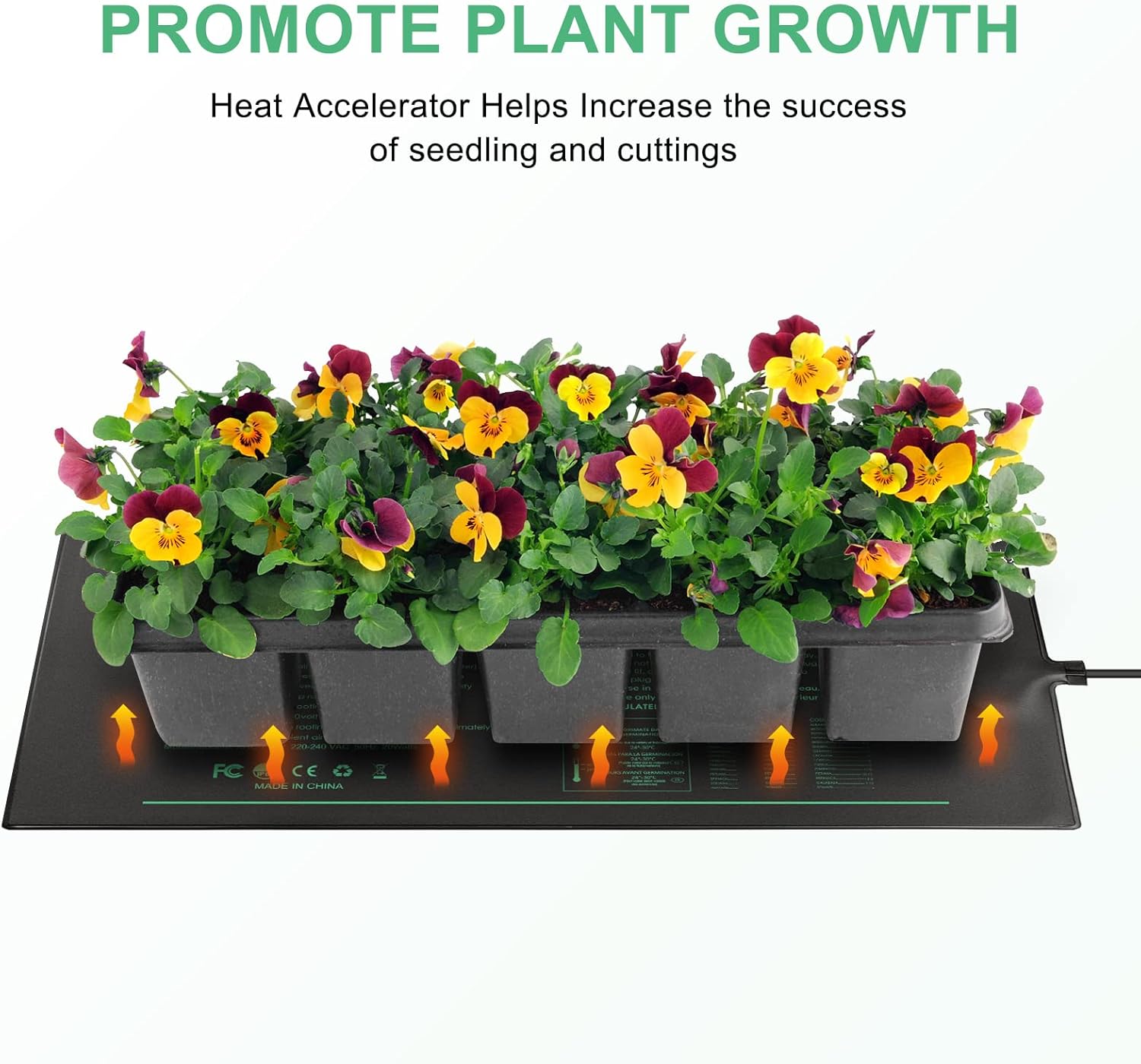- Heizfolien-Design: Im Gegensatz zum herkömmlichen Heizdraht verwenden wir die neueste Heizfolie, da sie eine stabile Temperatur bieten kann. Die professionelle Heizmatte hält die Sweet-Spot-Temperaturen um 68-108℉ (20-42℃) aufrecht, was die perfekten Temperaturen für den Saatstart und die Schnittvermehrung sind.
