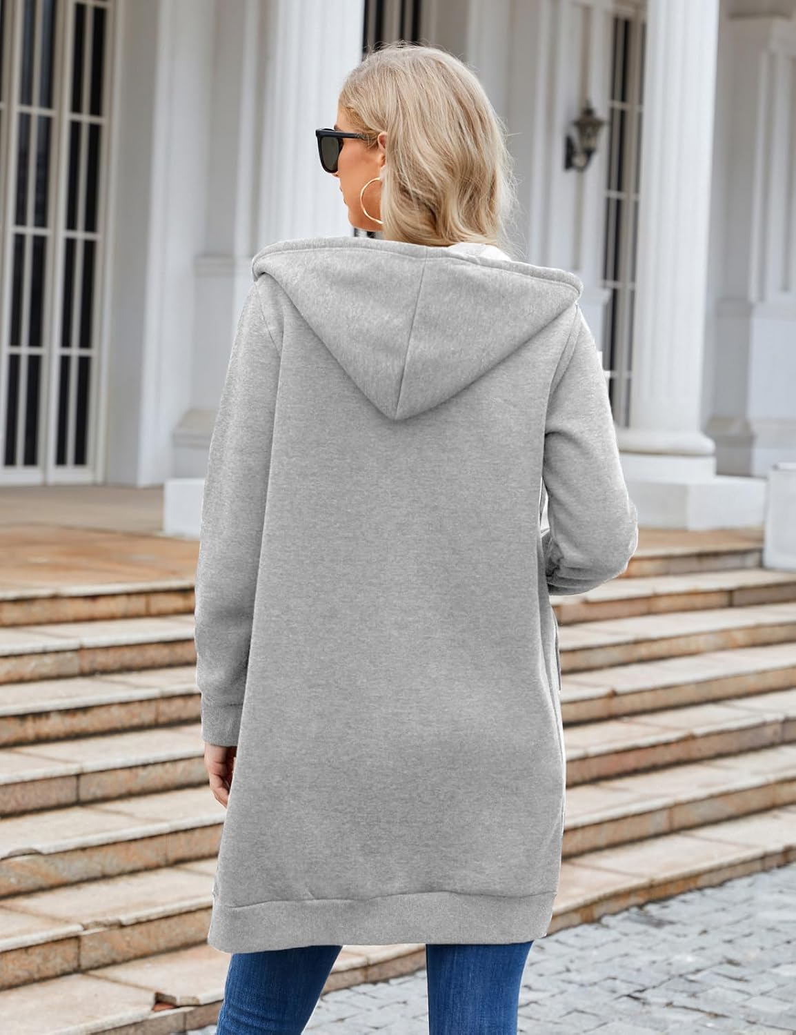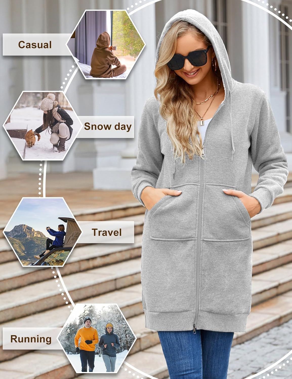 - 【Eigenschaften】: Mittellanger Kapuzenmantel mit durchgehendem Reissverschluss zum einfachen An- und Ausziehen; riesige Kapuze und Taschen halten Kopf und Hände warm; weicher und warmer Hoodie damen mit Fleecefutter und zwei warmen Eingrifftaschen,