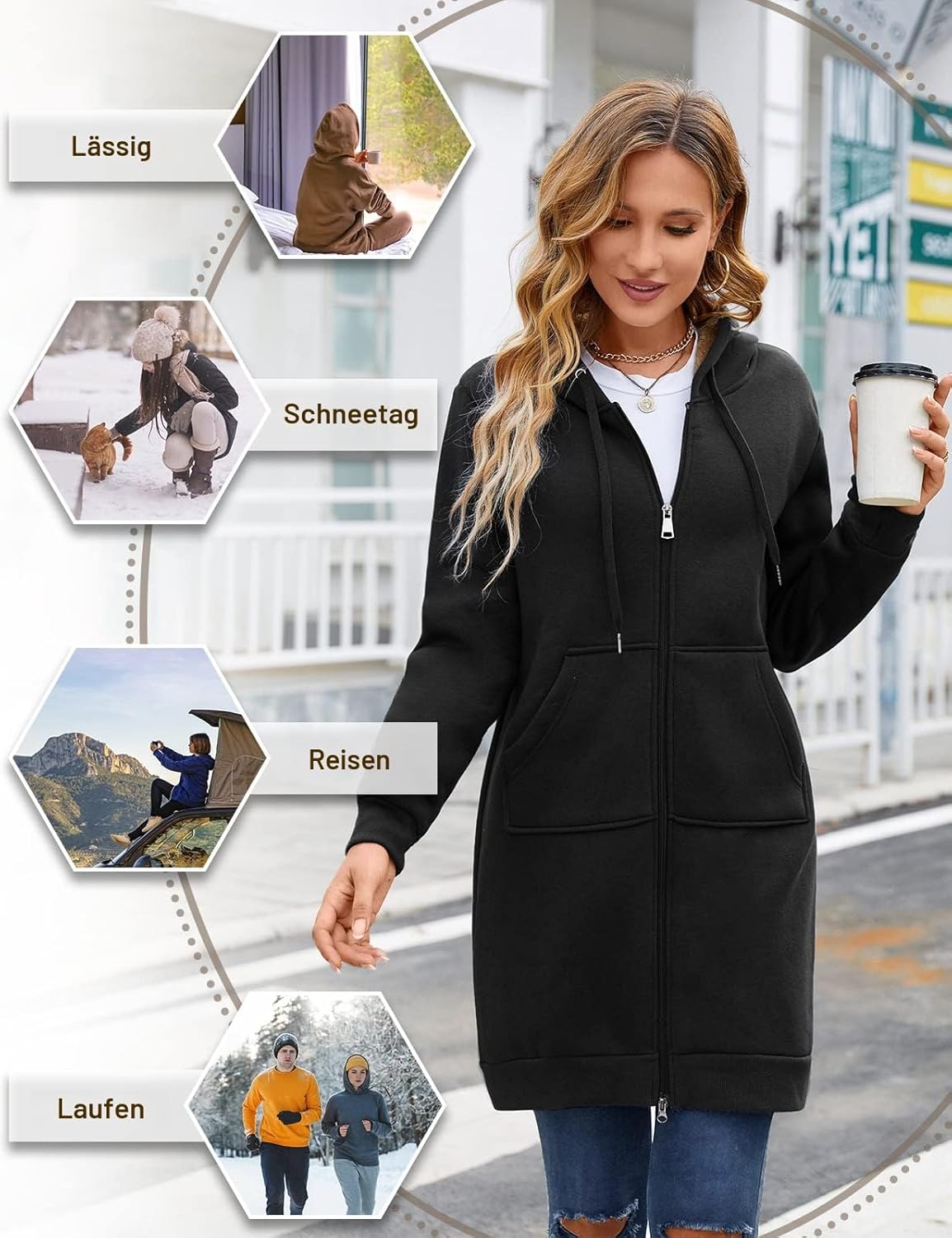 - 【Anwendbare Anlässe】: Modische kapuzenpullover damen mit Reissverschluss und Kordelzug, sehr geeignet zum Ausgehen im Herbst und Winter, sehr dick und warm, geeignet für Outdoor, Alltag, Party, Urlaub, Büro, Freizeit, Campingausflug, Grillen im