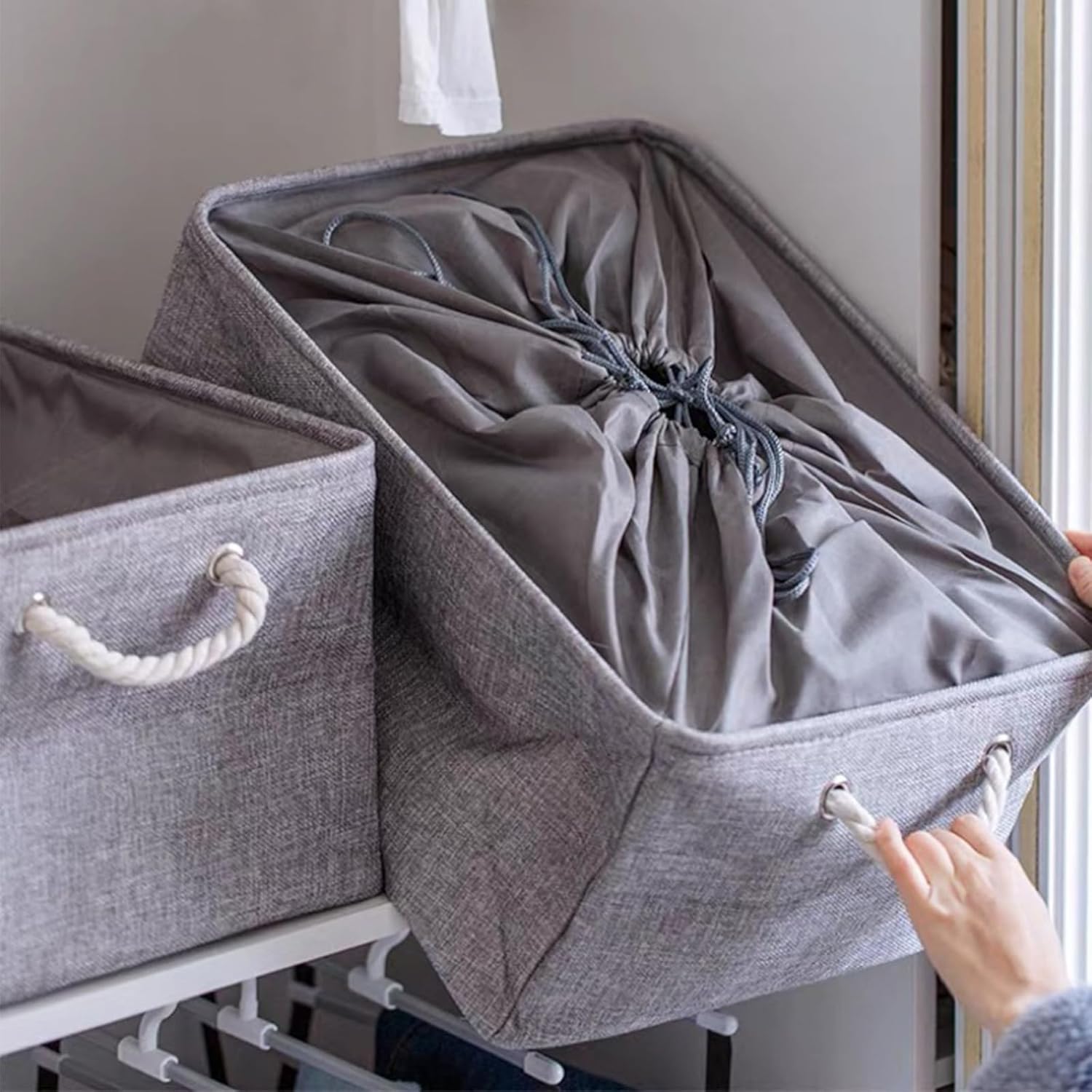 - 【Robuste Konstruktion】 Der stabile Metallstangenrahmen um die Oberseite behält die Form des Aufbewahrungsbox bei, geflochtene Baumwollseilgriffe erleichtern das Tragen oder Ziehen aus Regalen. Wir sind ein lokaler Verkäufer in Deutschland, bitte