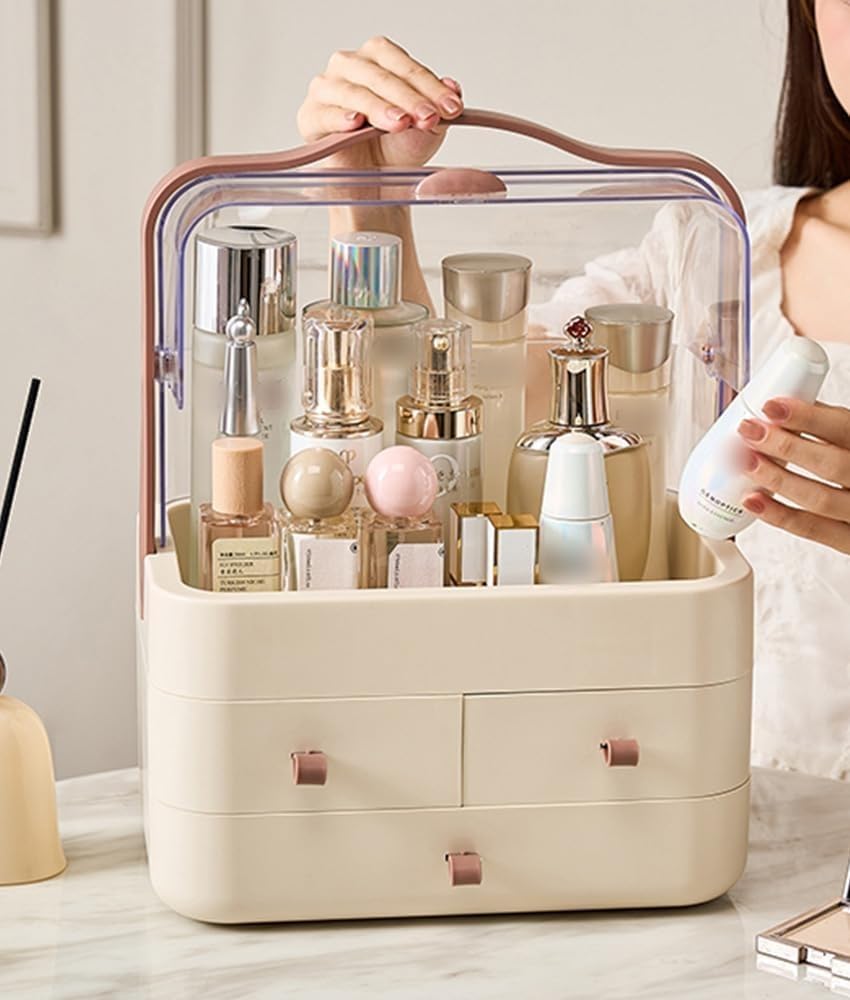- 【Staubdicht und Wasserdicht】: Die durchsichtige Kosmetik-Aufbewahrungsbox wird mit einem dicken, hochwertigen Deckel geliefert, um Ihre Kosmetika vor Staub und Wasser zu schützen. Die Kosmetik-Aufbewahrungsbox hat Kategorien: 1 Hauptständer + 1