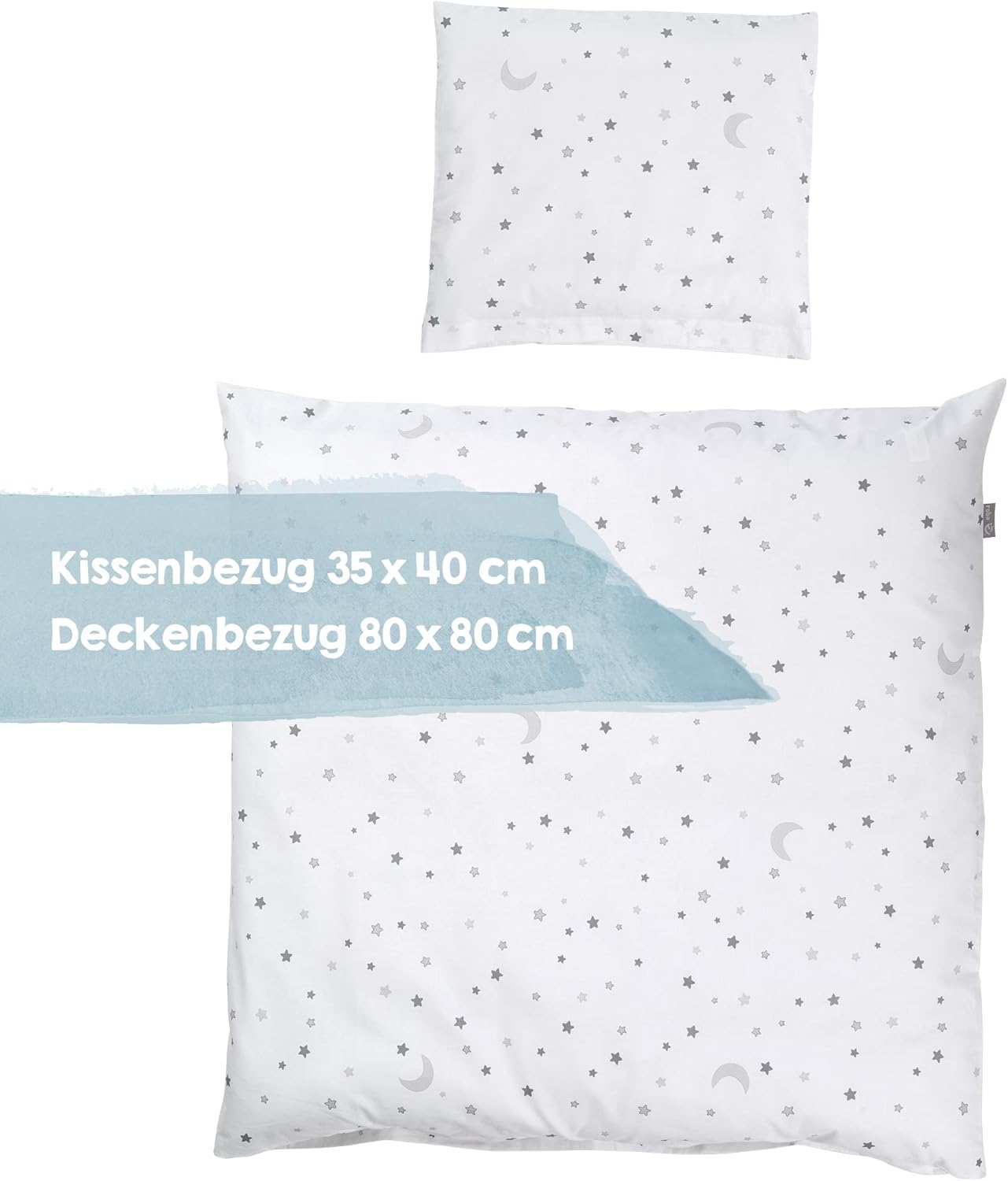 - DIE HOCHWERTIGE 2-TEILIGE BABYBETTWÄSCHE mit einem Kissenbezug 35 x 40 cm und einem Bettbezug 80 x 80 cm ist aus 100 % hautfreundlicher & atmungsaktiver Baumwolle gefertigt.