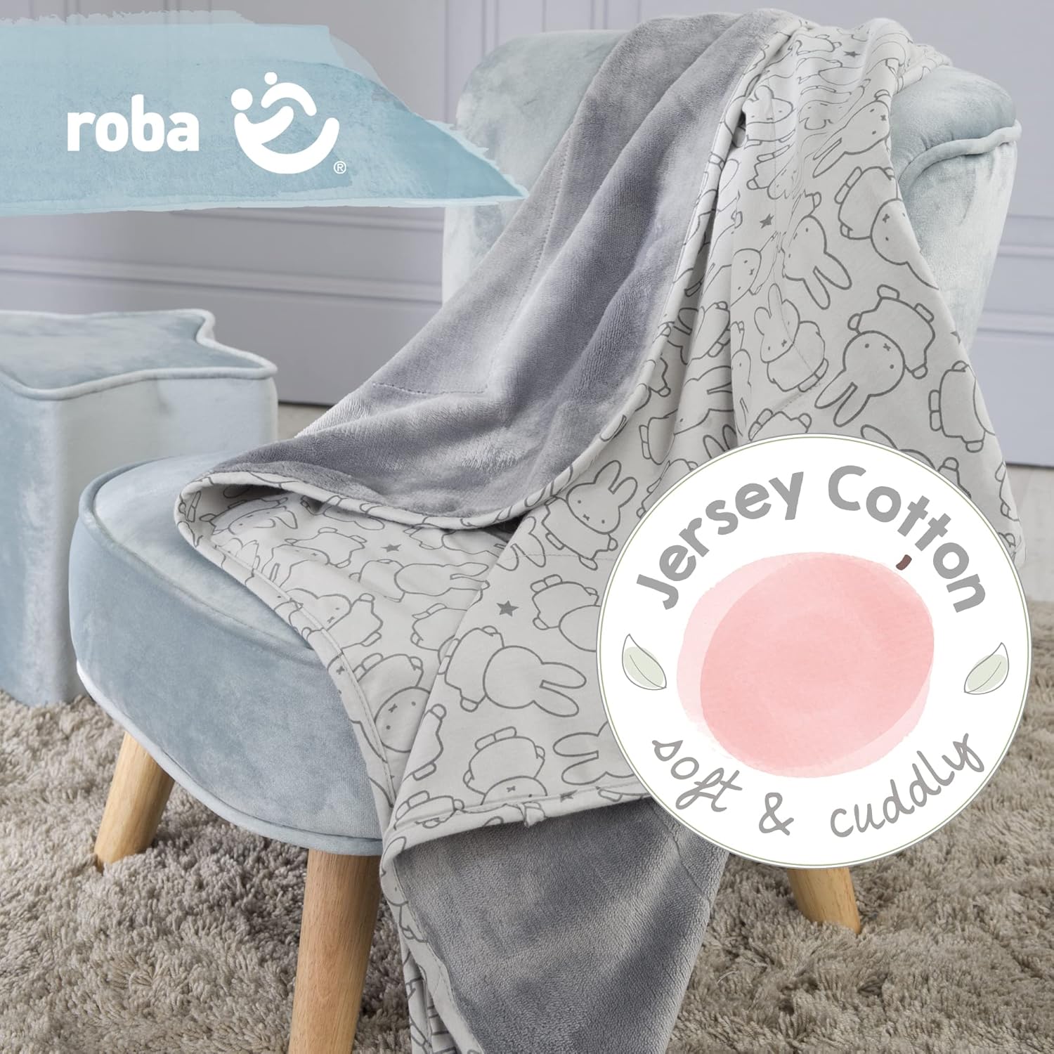 - DIE ROBA BABYDECKE „Miffy“ AUS 100% BAUMWOLL-JERSEY ist der ideale Begleiter für unterwegs und zuhause. Sie ist kuschelweich & eignet sich als Kinderwagen-, Krabbel-, Spiel- und Kuscheldecke