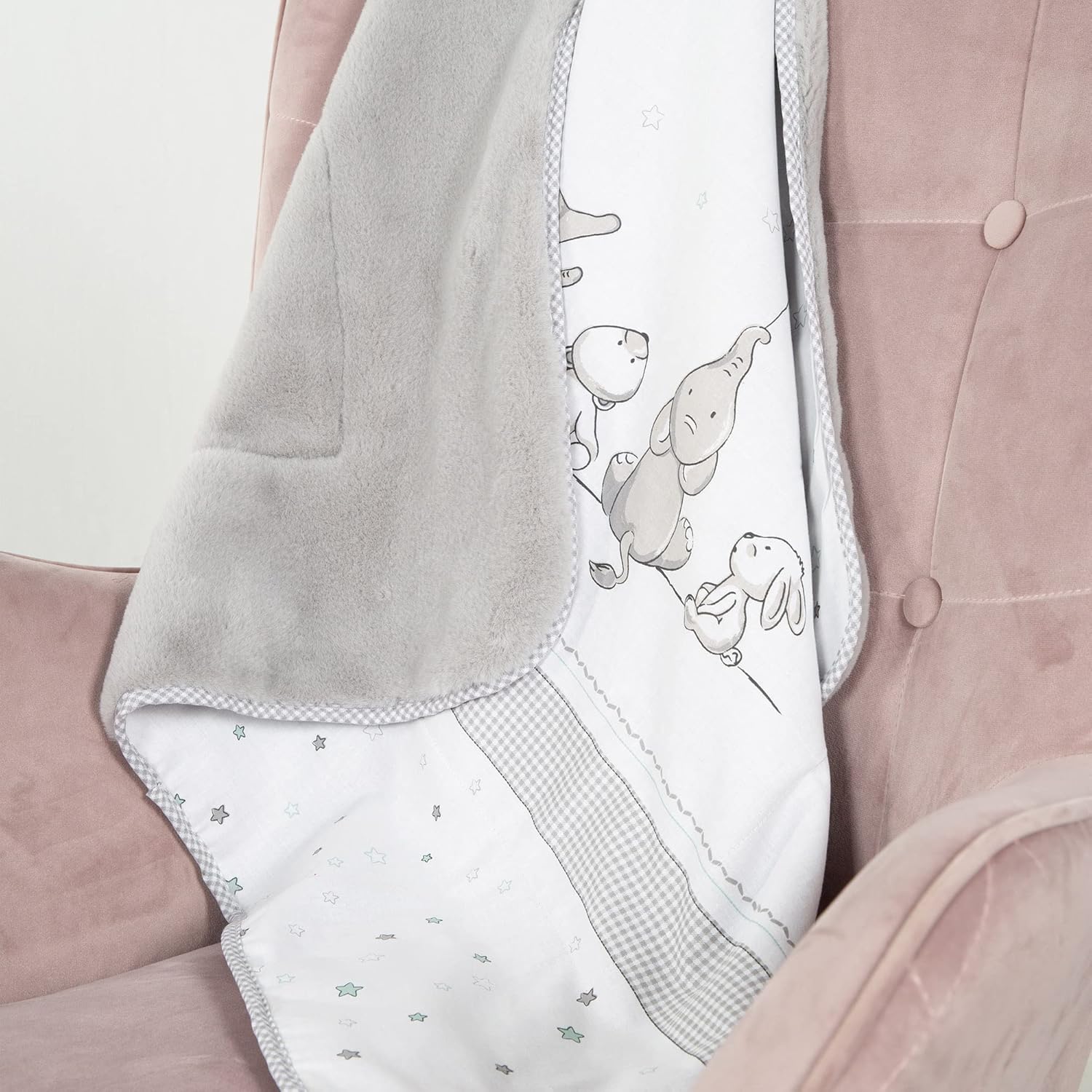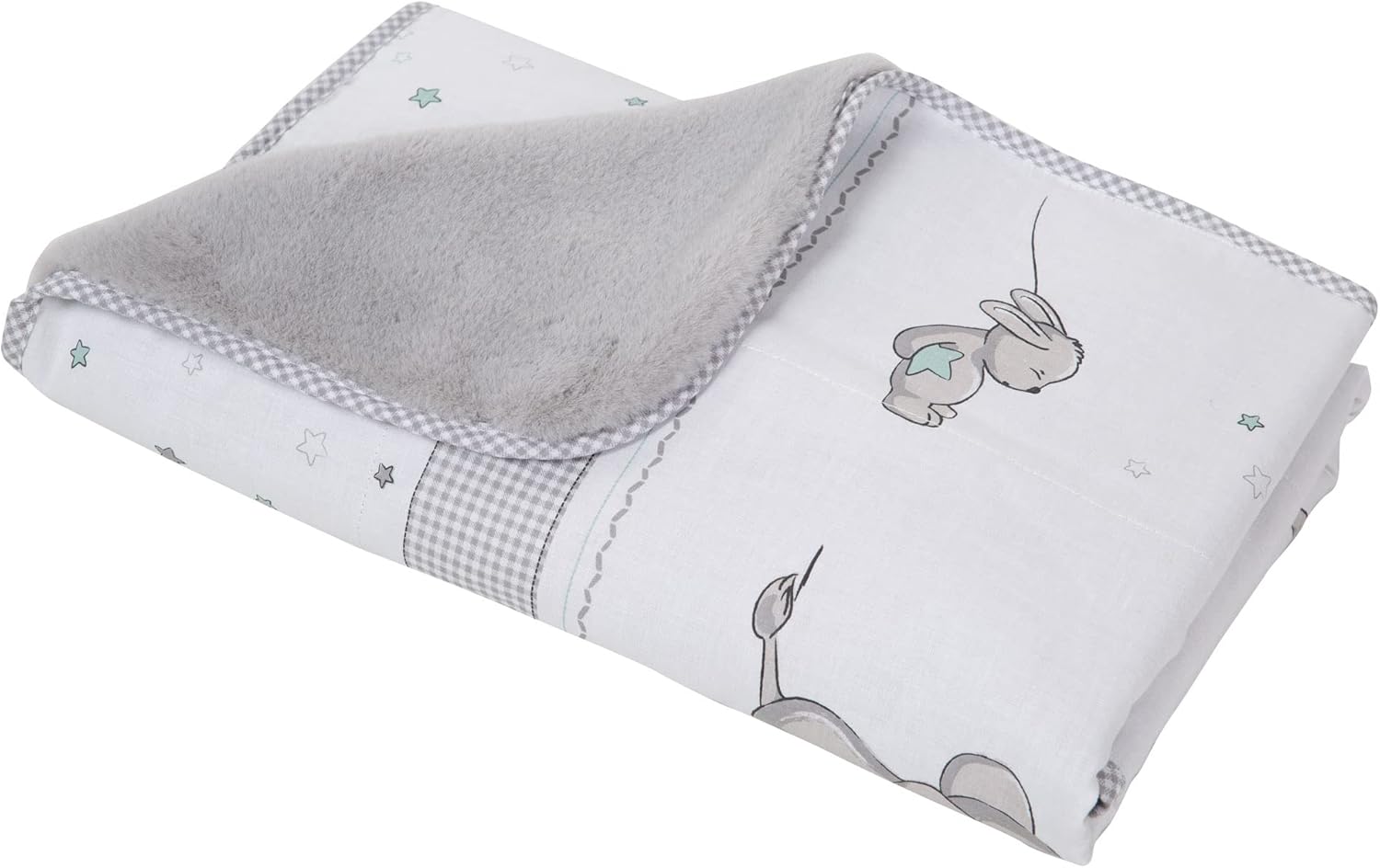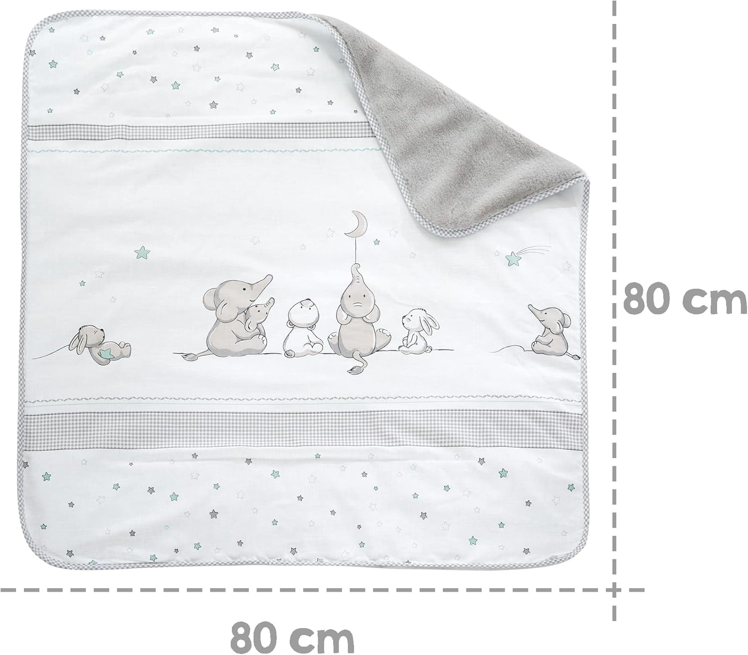 - Die Textilie kann nicht nur als Kuscheldecke, sondern darüber hinaus als Kinderwagendecke, zum Wickeln oder auch als Krabbeldecke verwendet werden