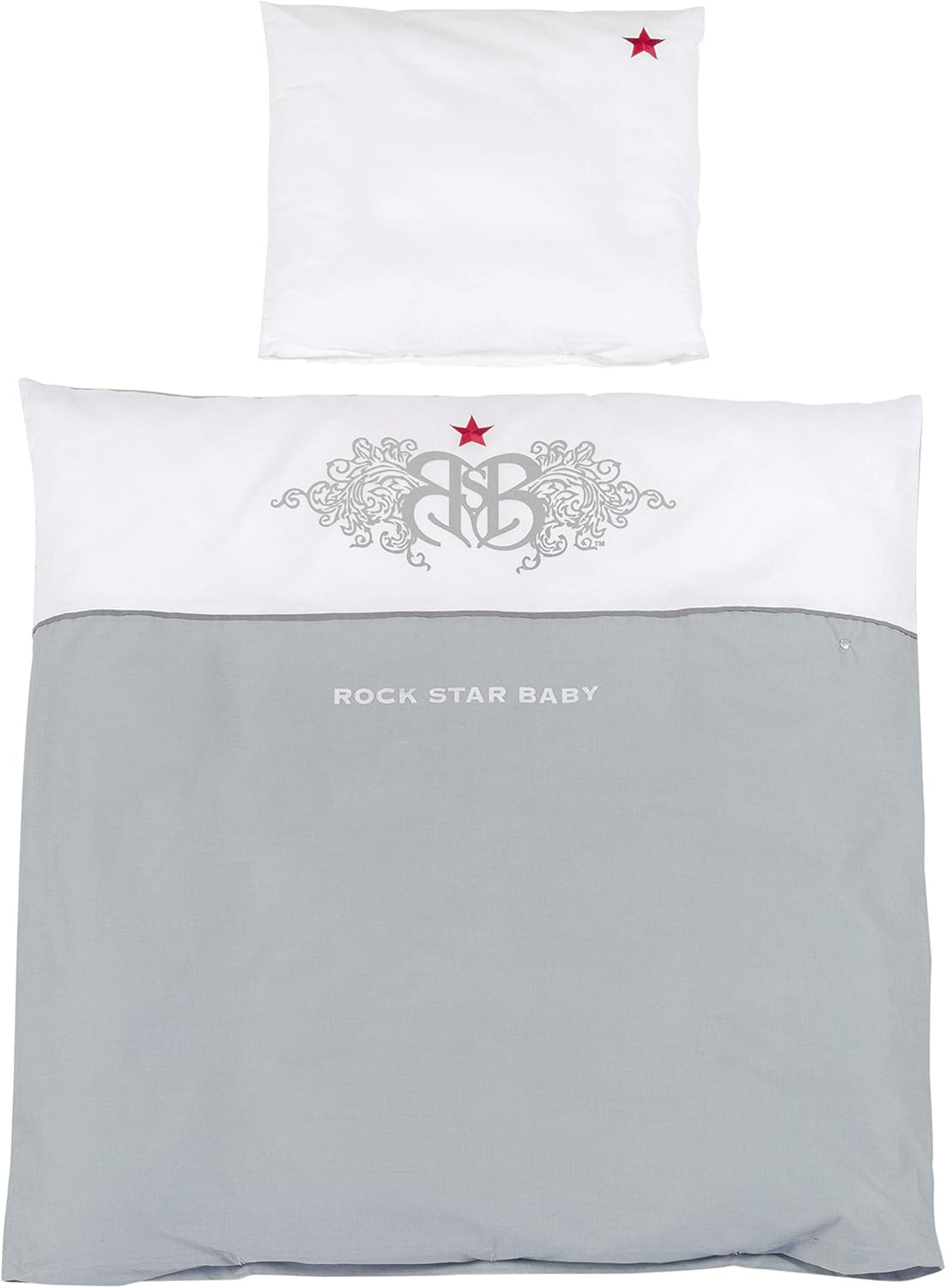- roba Bettwäsche-Set 2-tlg Kollektion Rock Star Baby: Die Babybettausstattung ist im rockigen Design in grau und weiss sowie einer coolen Appliaktion bedruckt.
