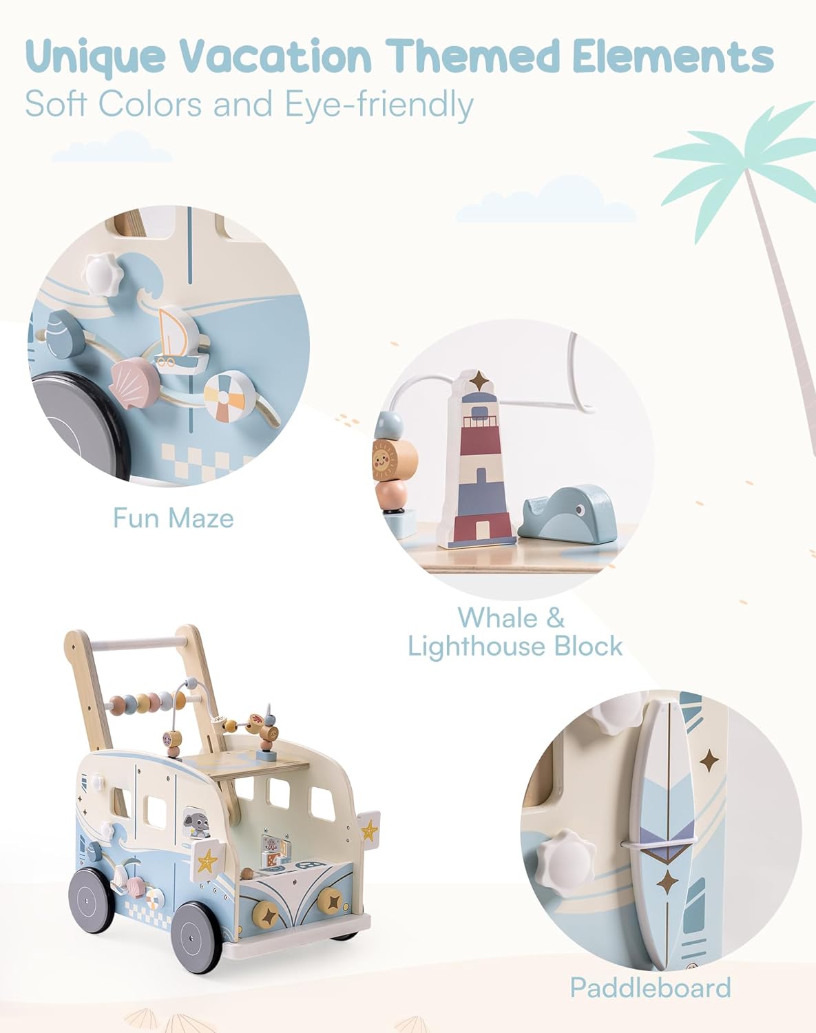 - đăFunktions Baby LauflernhilfeăTauchen Sie Ihr Kind mit dem ROBUD hölzernes Baby AktivitĂ€tscenter Lauflern Spielzeug in eine Welt voller Wunder ein. Dieser Lauflernwagen ist im Urlaubsbus-Stil gestaltet, hat die Form eines Autos mit