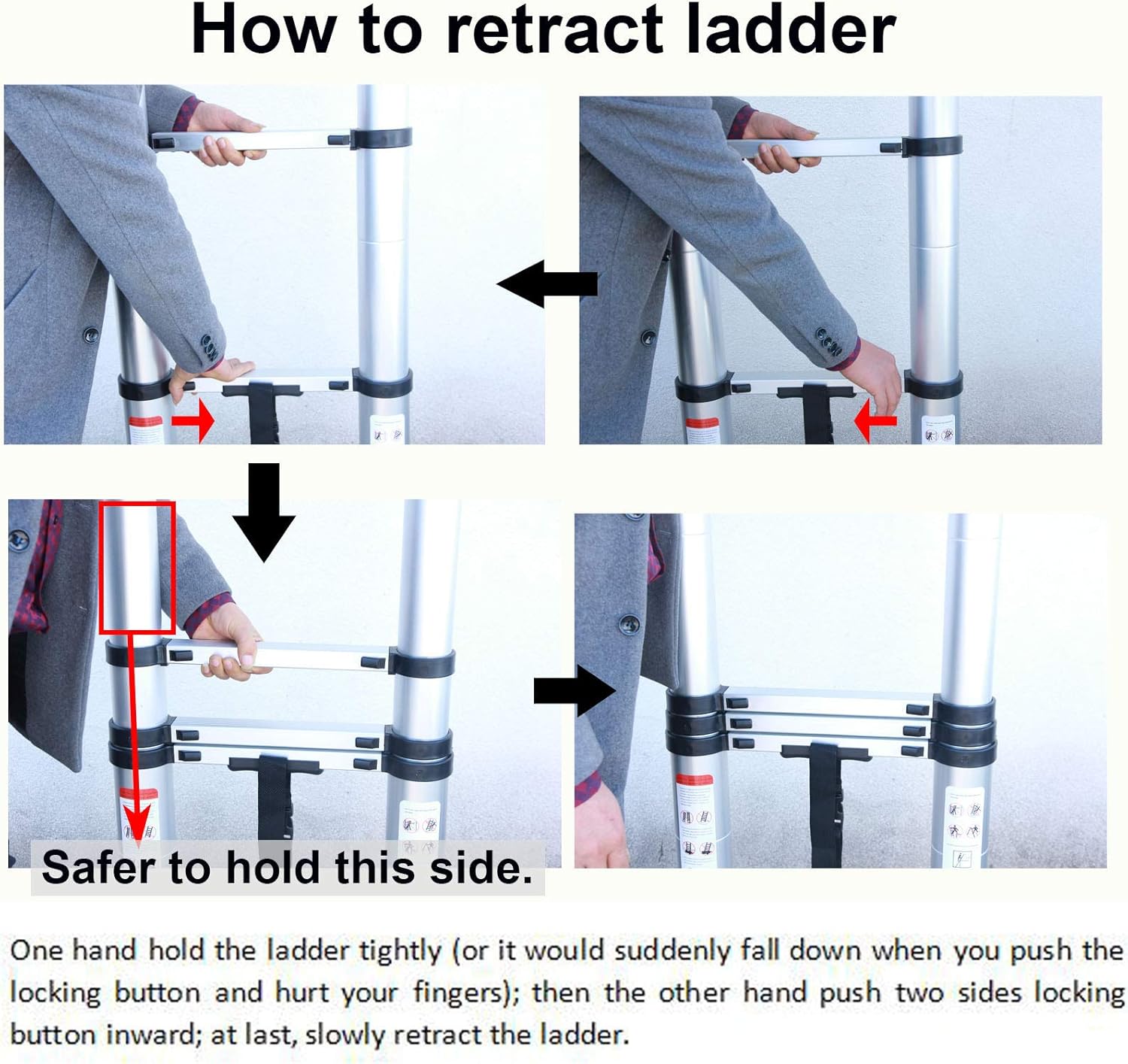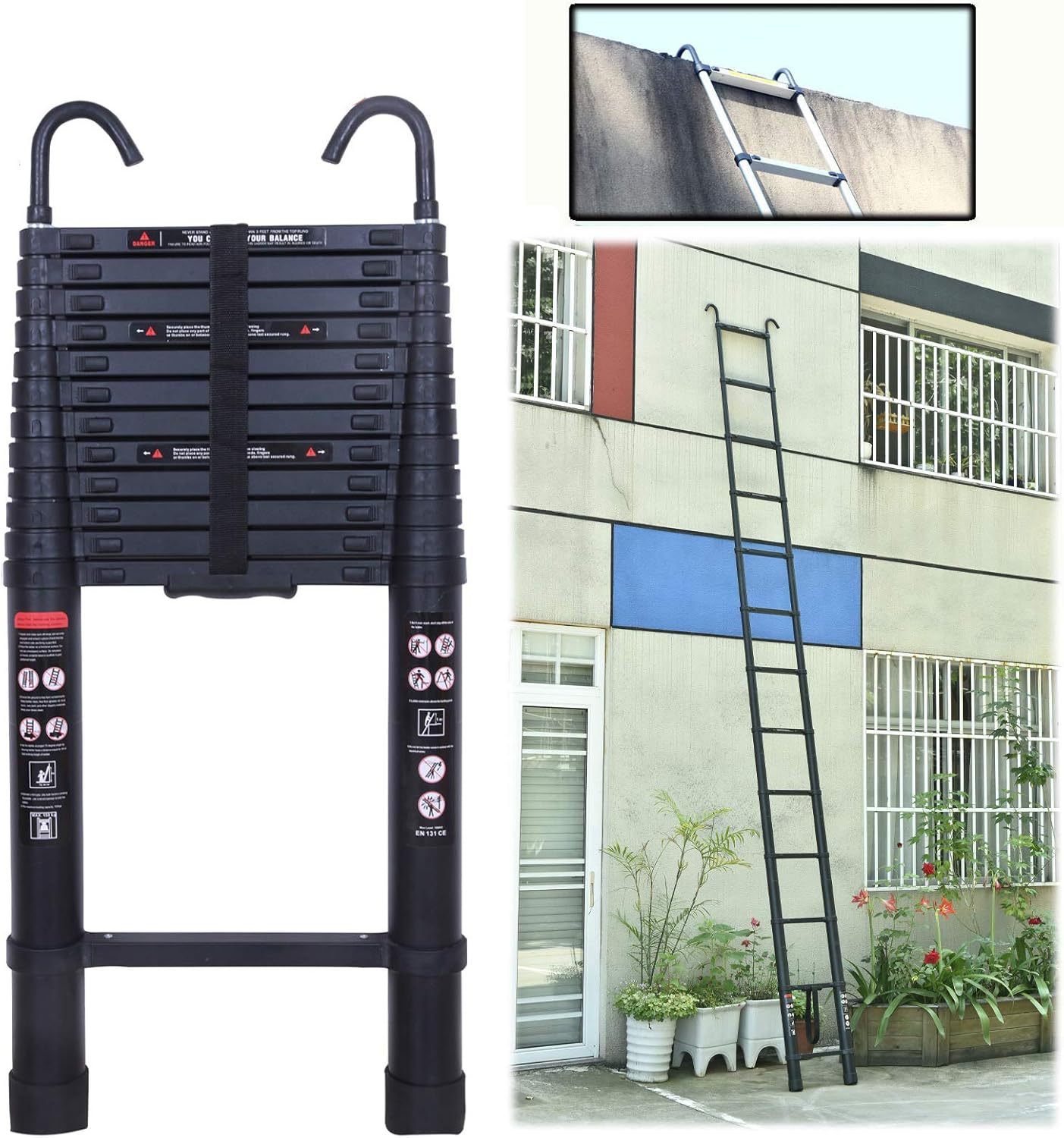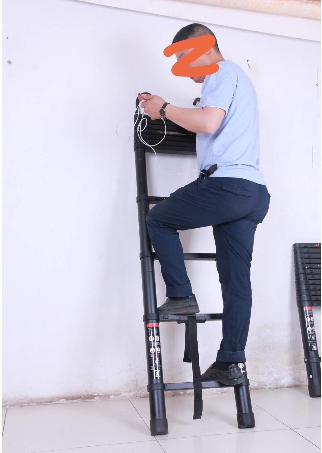 - Schwarze Pulverbeschichtung und Premium-Qualität: Diese 5 m lange Teleskopleiter ist aus einer hochwertigen eloxierten Aluminiumlegierung, die die Leiter viel leichter und sicherer macht und mit breiten Gewinden für ein bequemeres Aufsteigen sorgt.