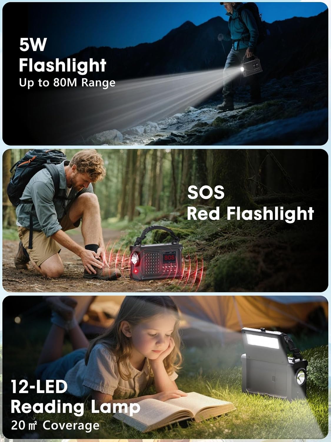 - 💡Zwei Lichtmodi: Mit 5W LED-Taschenlampe und blendfreiem Leselicht bietet das Solar Radio helle und angenehme Beleuchtung - ideal für Nachtlager und Notfälle.