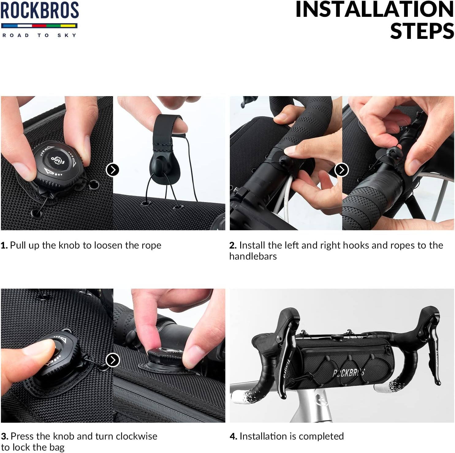 - 【Spezielles Befestigungssystem】Unsere Fahrradlenkertasche verfügt über ein von ROCKBROS selbst entwickeltes Befestigungssystem, das mittels eines Knopfes einfach zu installieren und zu fixieren ist. Dieses System ermöglicht es, die Tasche sicher,