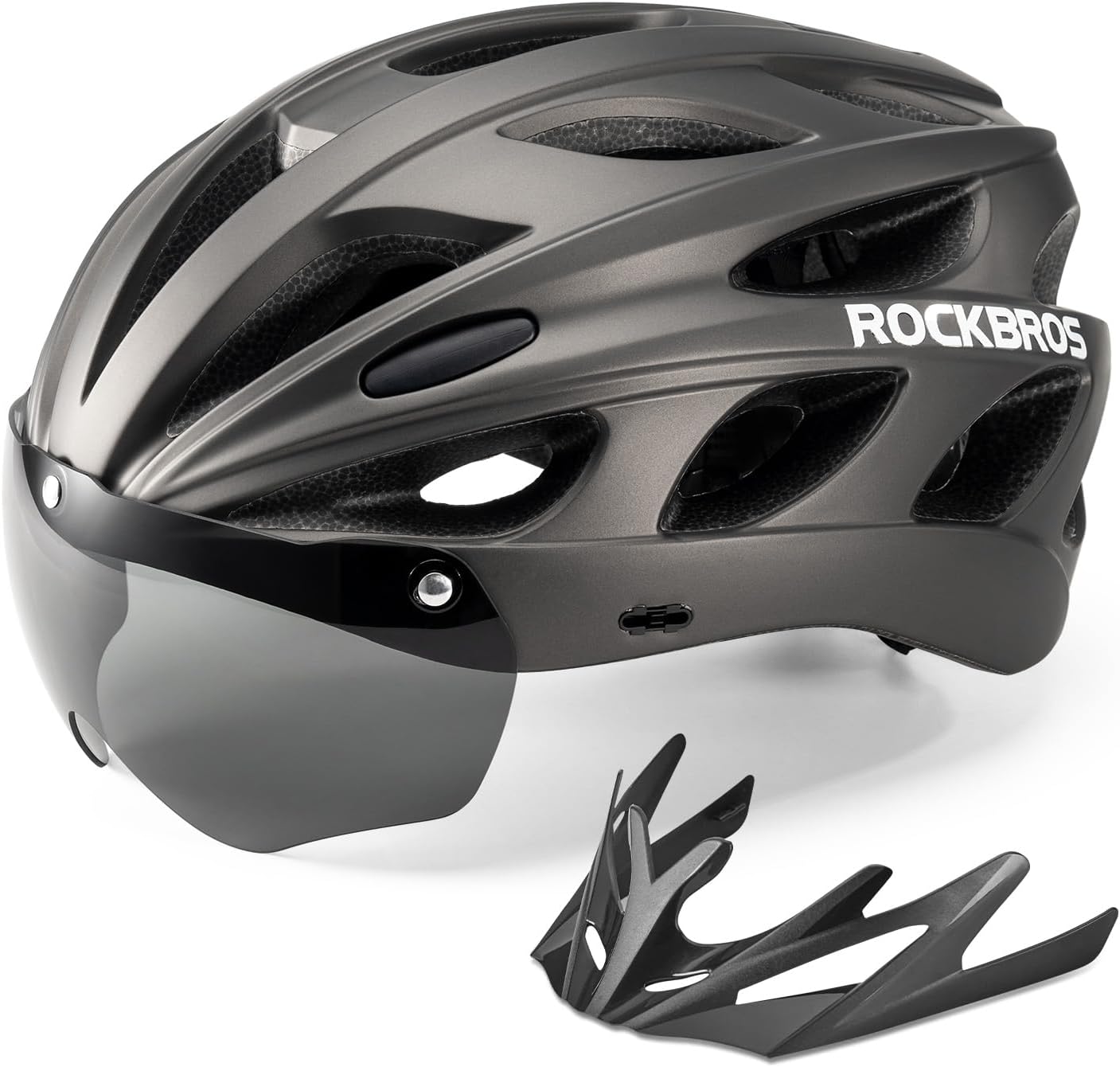 ROCKBROS Fahrradhelm MTB Rennrad Radhelm Integriert mit Abnehmbaren Magnet Brillen Visier Grösse Ver