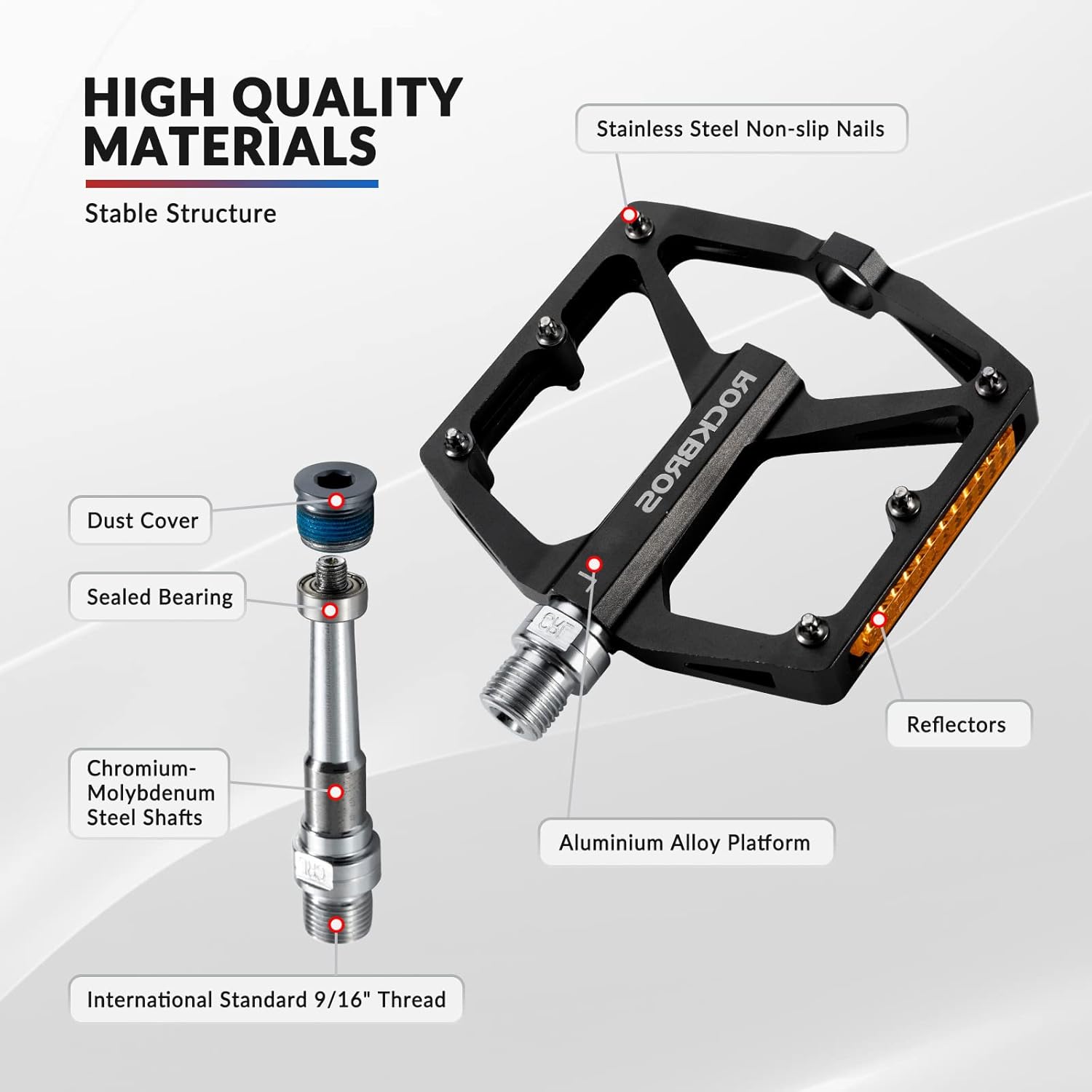 - 【Breite Plattform & Super Grip】Die 104 mm breite Plattformpedale bieten Ihnen ein komfortableres Fahrerlebnis. Ausserdem bieten 6 Anti-Rutsch-Spikes aus Edelstahl auf jeder Seite der Mountainbike-Pedale genügend Grip für Sie und verhindern